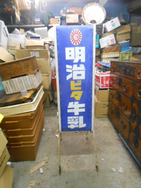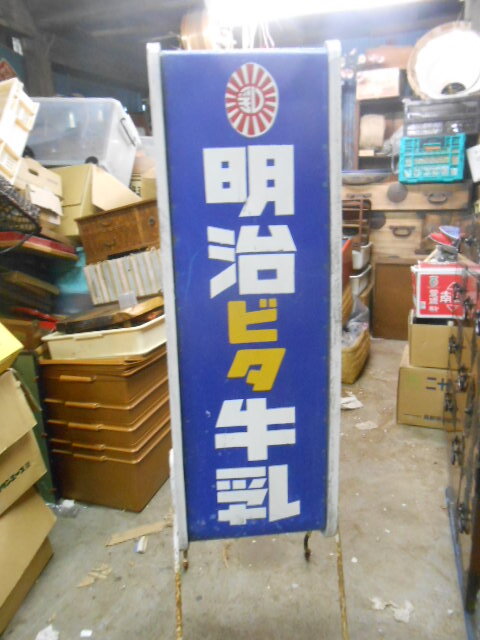 【ここ】時代当時の明治ビタ牛乳両面達看板,店頭看板
