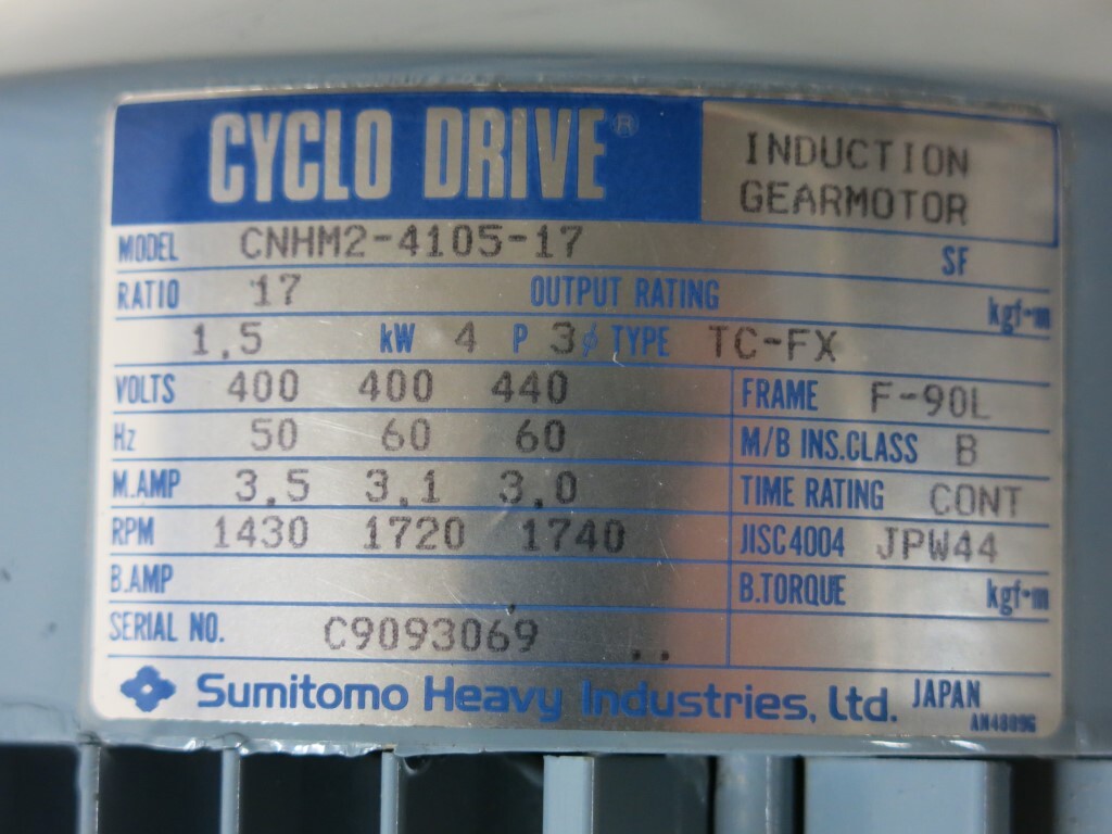 10K006 住友重機械工業 CYCLO サイクロ 減速機 4000シリーズ [CNHM2-4105-17] 1.5kw 長期保管品 判る方 現状 売り切り