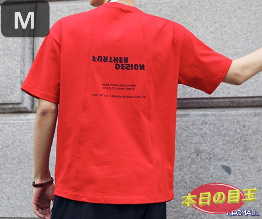本日のお買得 ☆ 丸首 半袖 Tシャツ【472】 レッド Mサイズ トップス シャツ シンプル イラスト デザイン 春夏