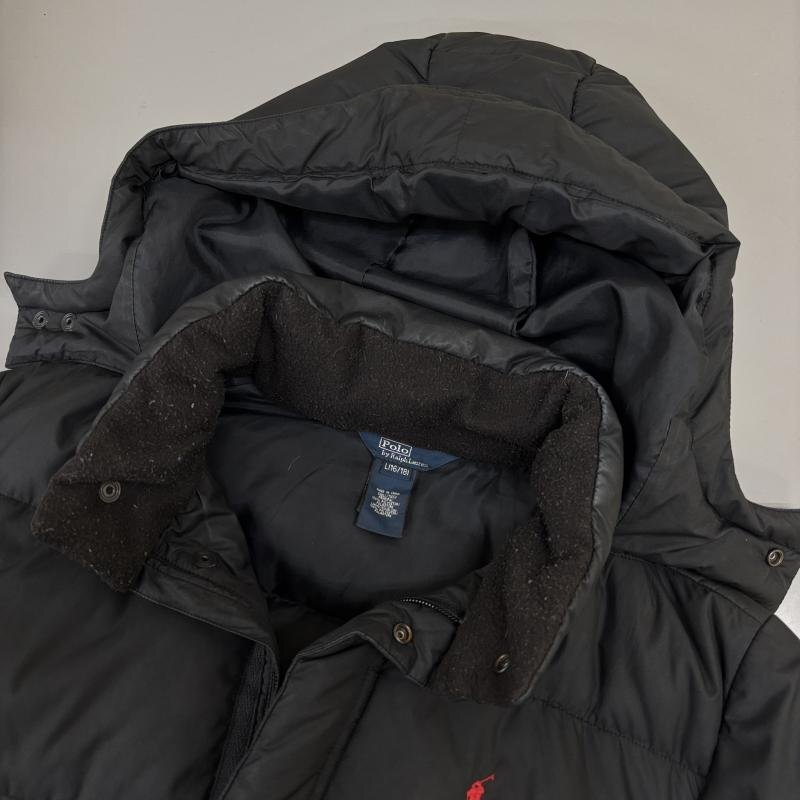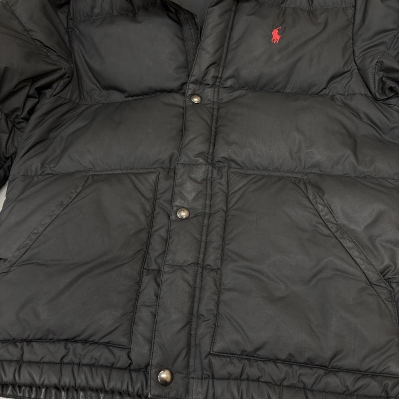 ポロバイラルフローレン ポニー ロゴ 刺繍 フード 取り外し可能 ナイロン ダウン ジャケット 黒 ブラック L