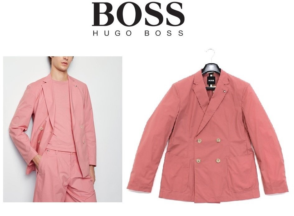 14万新品◆48=M◆BOSSヒューゴボス 『C-Hanry』ダブルブレストシャツジャケット SLIMFIT ピンク