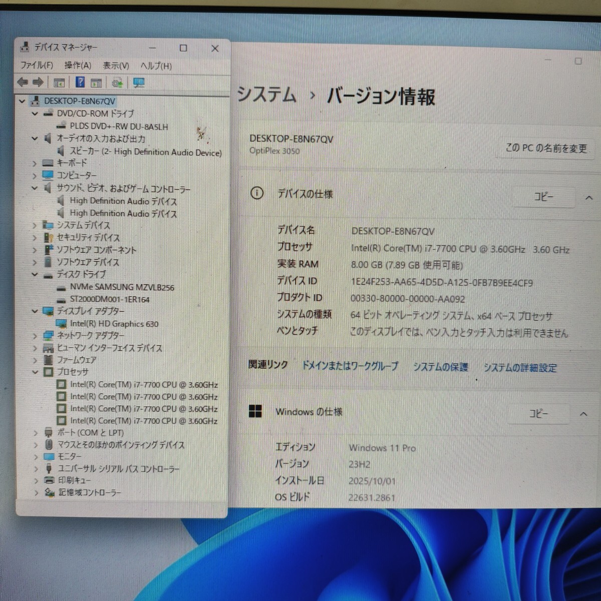 | メーカー | DELL Optiplex 3050 SFF 詳細なスペックは画像を確認してください |