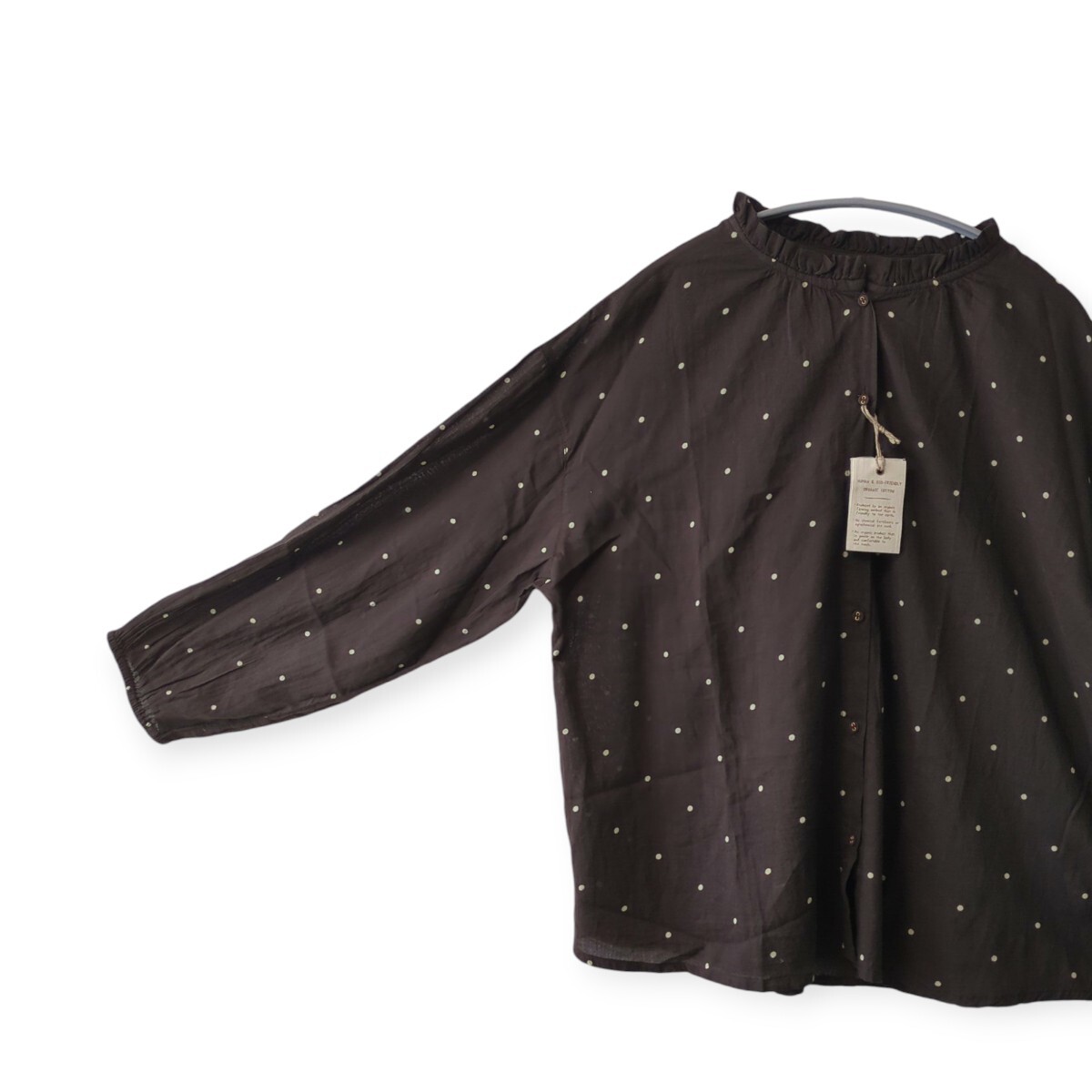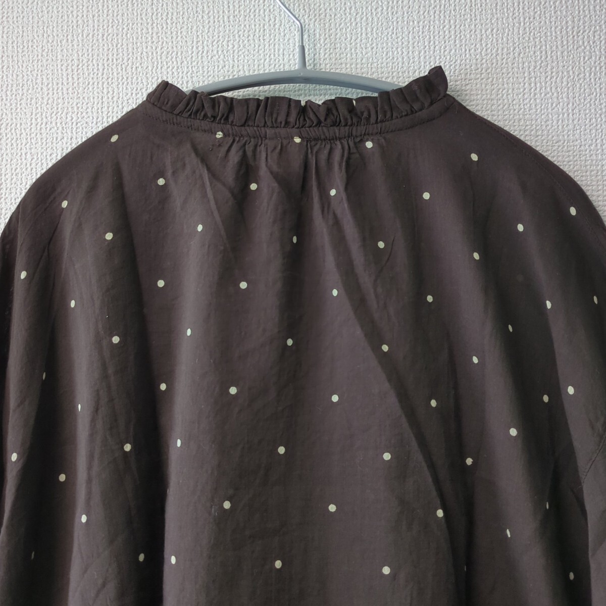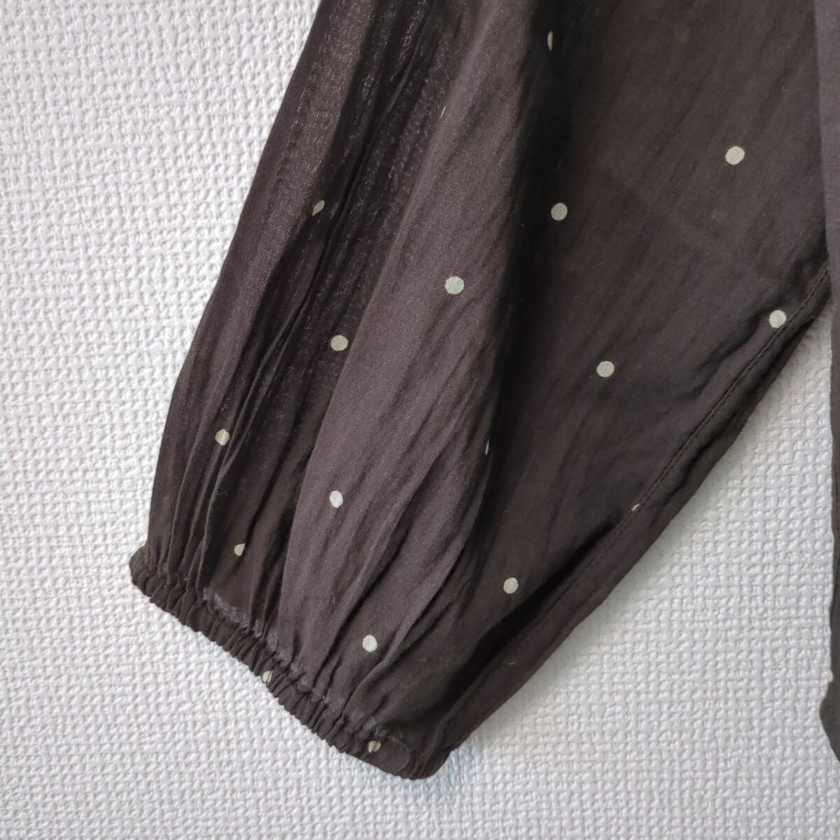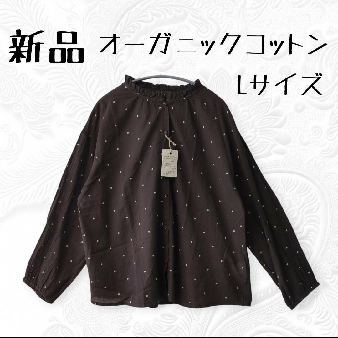 新品 オーガニックコットン 襟フリルドット前開き長袖ブラウス 水玉 ナチュラル カジュアル