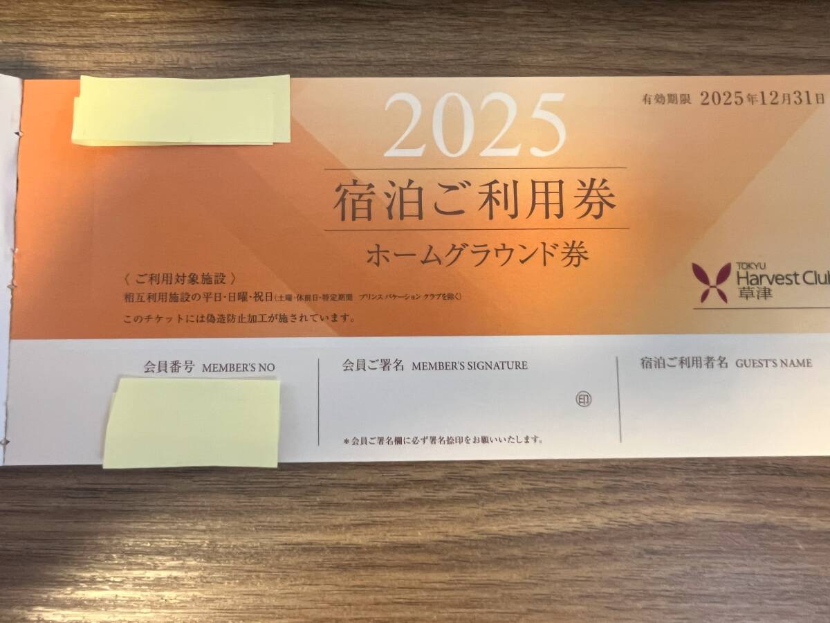東急ハーヴェベストクラブ 草津 宿泊ご利用券 ホームグラウンド券 1枚