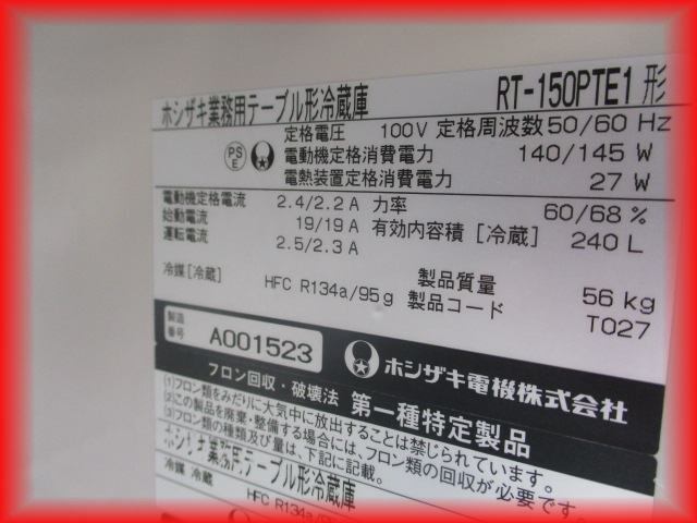 | ●冷蔵庫 業務用 中古 3ドア 台下冷蔵庫 ホシザキ 1500×450mm 240L RT-150PTE1 コールドテーブル 送料無料b● | ||||||||||||||