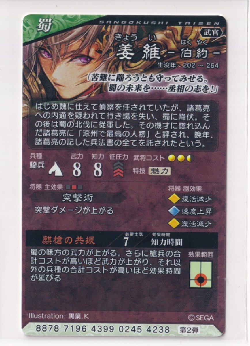 三国志大戦4 旧枠 蜀 2弾 SR 姜維 麒槍の共振 突撃術 コレクション用 【3子09】