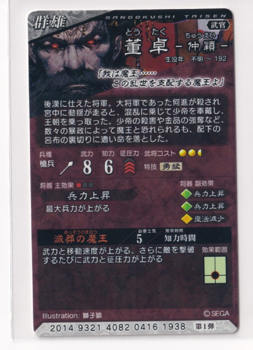 三国志大戦4 旧枠 群 1弾 SR 董卓 滅葬の魔王 兵力上昇 コレクション用 【3子09】