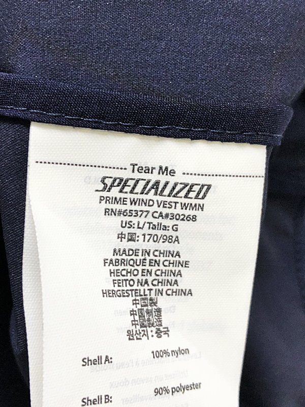 未使用品 スペシャライズド SPECIALIZED プライム ウィンド ベスト PRIME WIND VEST WOMEN’S Lサイズ ダークネイビーです。