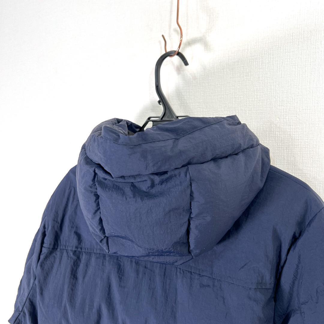 男性用のネイビー系の中綿ジャケット ジップアップジャンパー ブルゾン アウター コートです。中古品ですが目立つ傷や汚れもなく、まだまだ使えます。古着 フィラ ニッキー株式会社 防寒/フード付き/メンズアウター/ネイビージャケット/