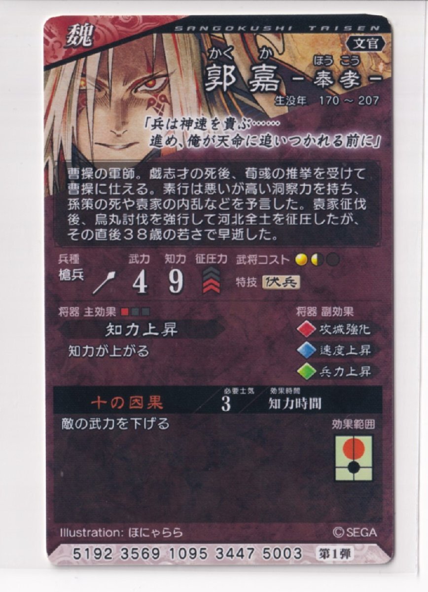 三国志大戦4 旧枠 魏 1弾 SR 郭嘉 十の因果 知力上昇 コレクション用 【3子09】