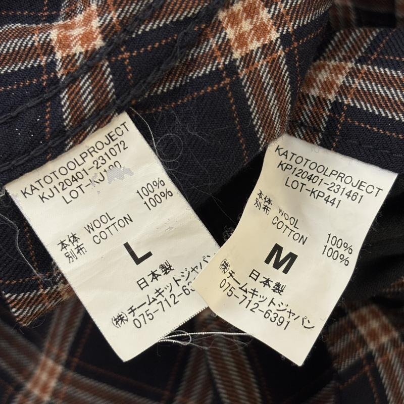 カトー 日本製 チェック柄 ウール ワーク ジャケット クロップド パンツ セットアップ 紺 橙 ネイビー オレンジ -