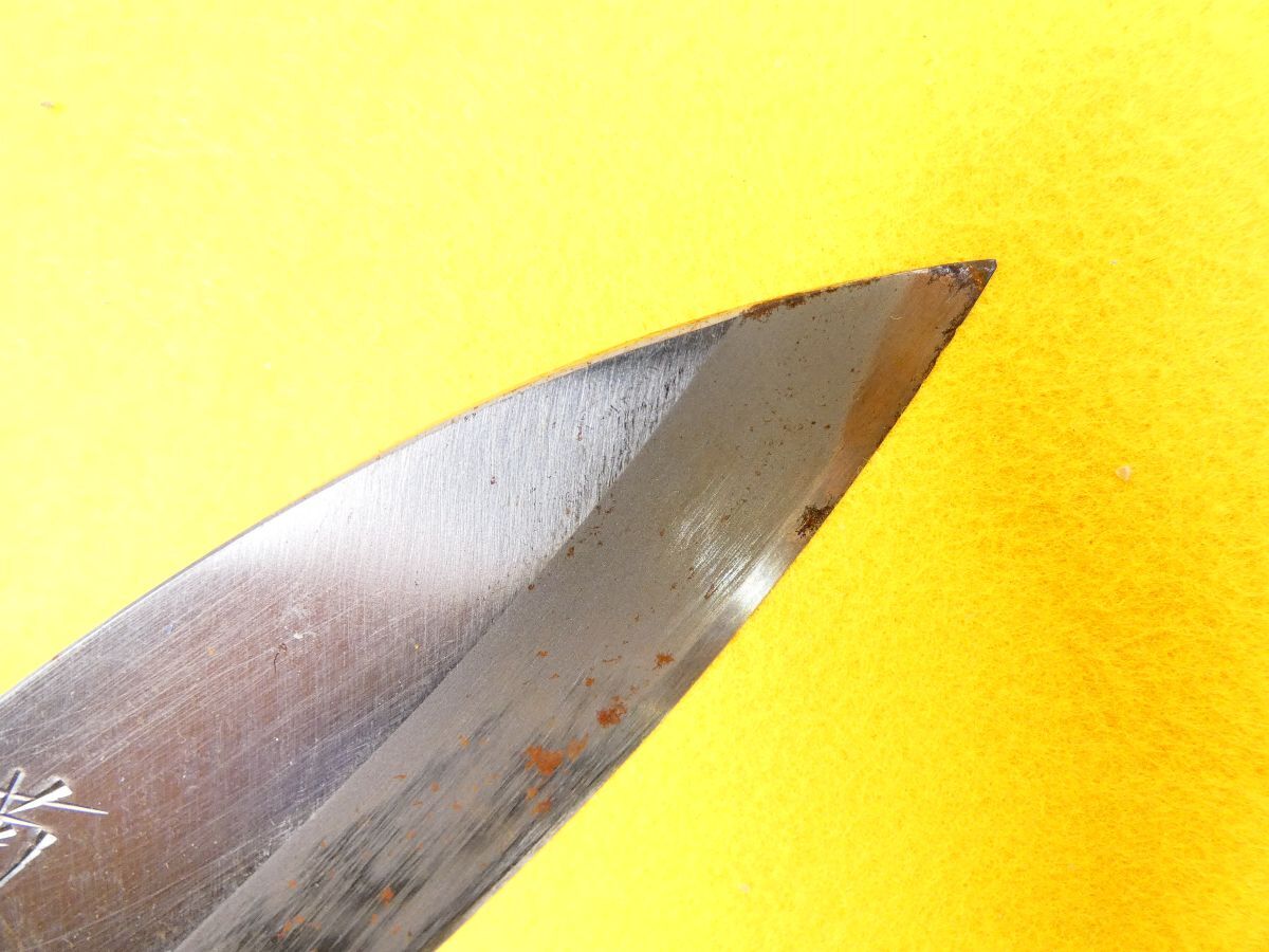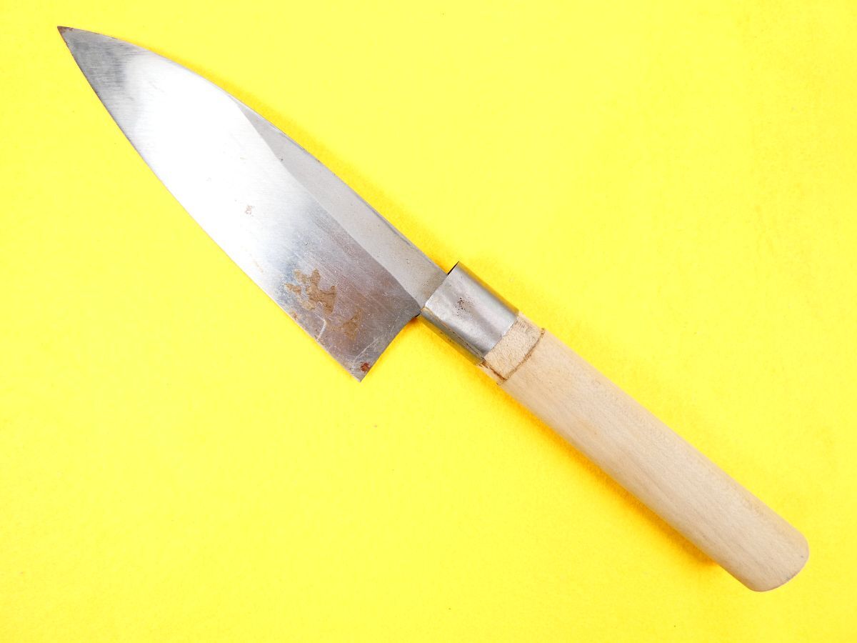 【 ◇(HT-4) 小出刃包丁 刃渡り:13.5cm 和包丁※現状渡し@60(9)】 ※基本的に金曜午後、土曜、日曜はオークションに関する連絡、発送等全般の対応は行っておりません。翌月曜日から順番になります。対応が遅れる場合が御座います。予め御了承下さい。 (金曜日終了日分の場合も翌月曜から対応です。) ※一番下の「ご注意事項」まで全てお読みになり、ご検討、ご入札をお願い致します。 ■状態:現状品です。 お手入れ等は行っておりません。 汚れ、傷等ございます。 細かな刃こぼれがございます。 当方知識が無く詳細不明です。 包丁の種類に誤りがある場合もございます。 詳しい方画像をご確認の上状態考慮の上ご検討をお願い致します。 ※付属品に関しては画像にてご確認いただけるものが全てとなっております。 ※タイトル最後尾の()内は当方の番号です。 素人の目視確認の為、見落としがある場合もございます。 クリーニングはあくまでも簡易的なため、細かな汚れやホコリが付着した状態でお渡しする場合もございます。 ■元払い 発送予定サイズ 60 ※送料は下記に記載しております。該当するサイズの欄をご参照下さい。 ※タイトルの『@』後の数字は目安の梱包サイズです。 未梱包の為あくまでも目安です。 ※梱包サイズは誤差が生じる場合がございますが、あくまでも出品時に記載したサイズで送料をご請求させて頂いております。 必ず送料を下記の表にて御確認の上、御検討、御入札をお願い致します。 ※お支払いはかんたん決済のみになります。 ※同梱に関しましては同日終了日分(同梱可能サイズ160 / 23㎏迄)のみとさせて頂きます。 送料は同梱サイズにより変動致します。 ゆうパック取り扱い不可商品との同梱の場合は佐川急便での配送となります。 ※配送業者、発送方法の変更は承れませんのでご了承願います。 ※送料は下記に記載しております。該当するサイズ、地域の欄をご参照下さい。 ※下記の【ご注意事項】を御覧頂き、御了承、御理解の上御入札、御検討を御願い致します。 |