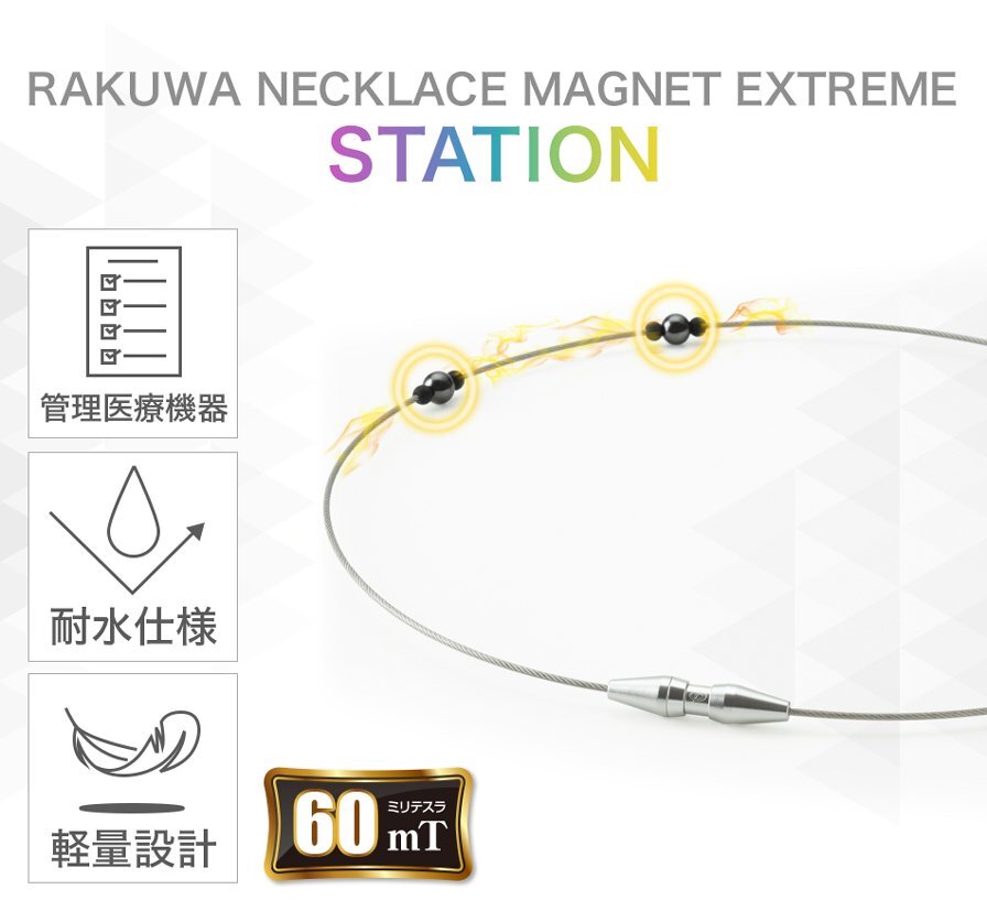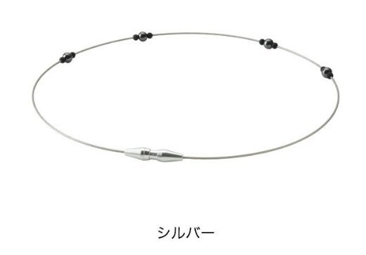 シンプルなワイヤーネックレスにフェライト磁石を4つ配置。