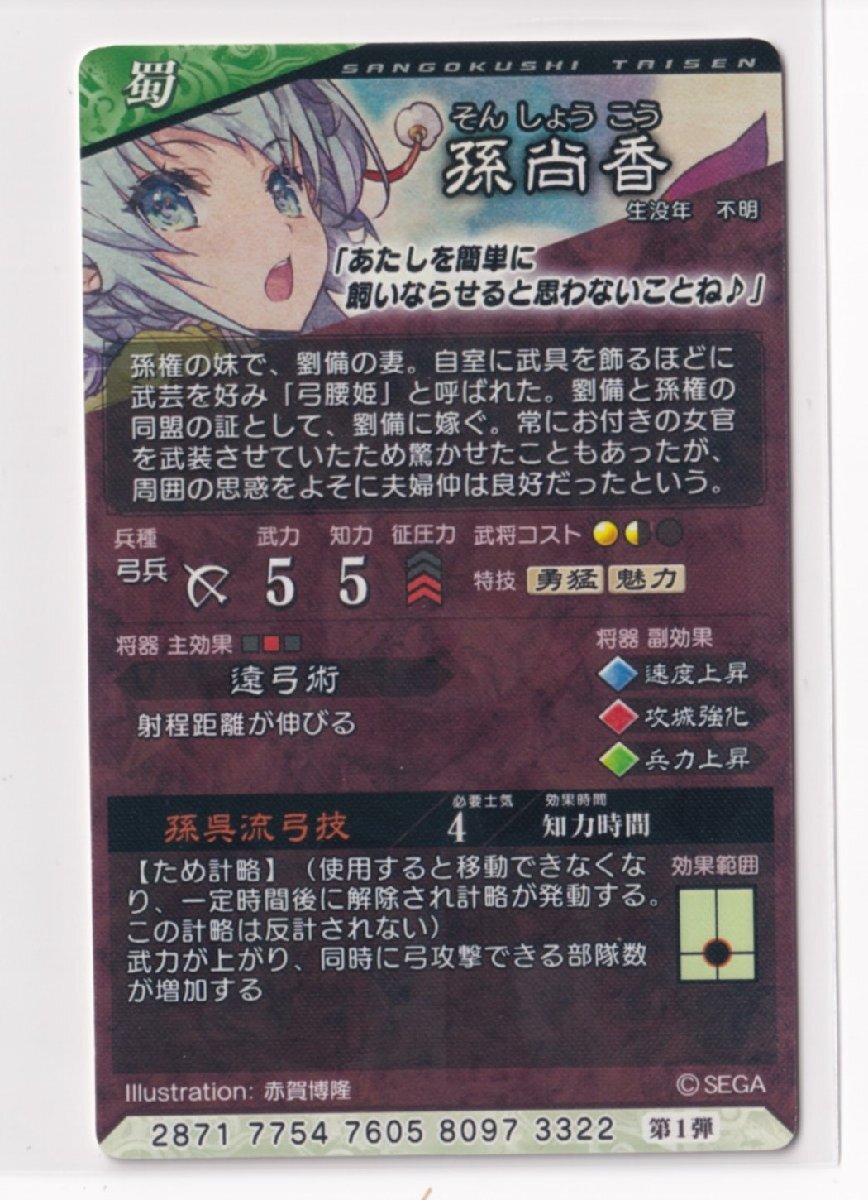 三国志大戦4 旧枠 蜀 1弾 SR 孫尚香 孫呉流弓技 遠弓術 コレクション用 【3子09】