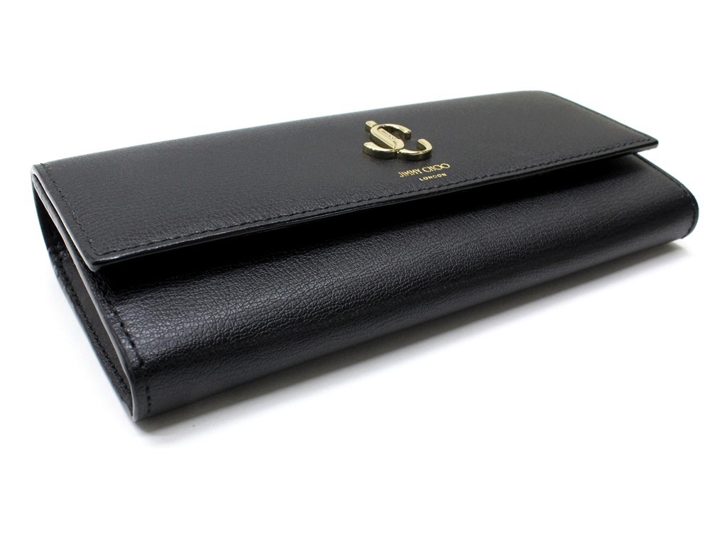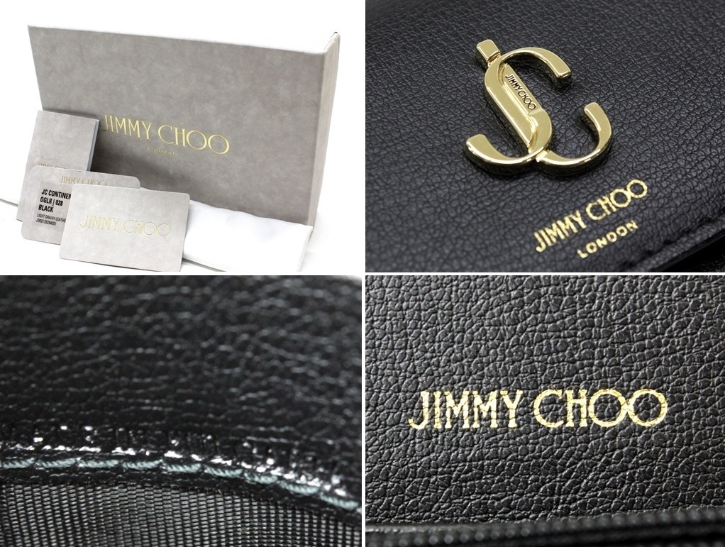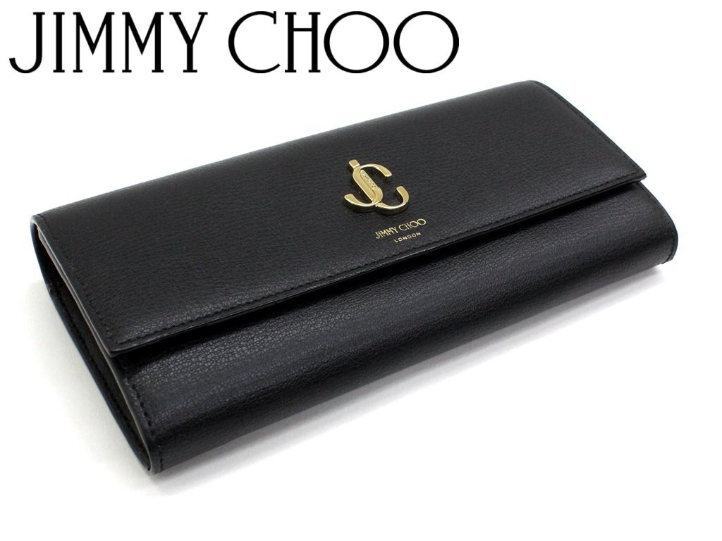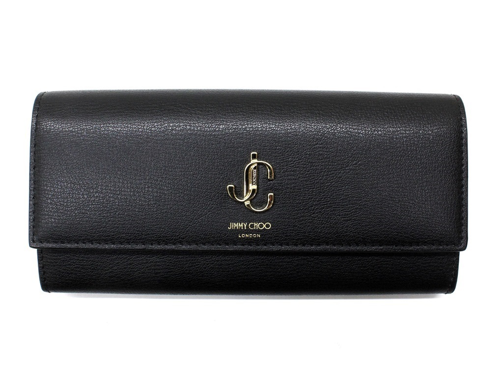 10万新品◆JIMMY CHOOジミーチュウ◆ロゴデザイン黒レザー長財布