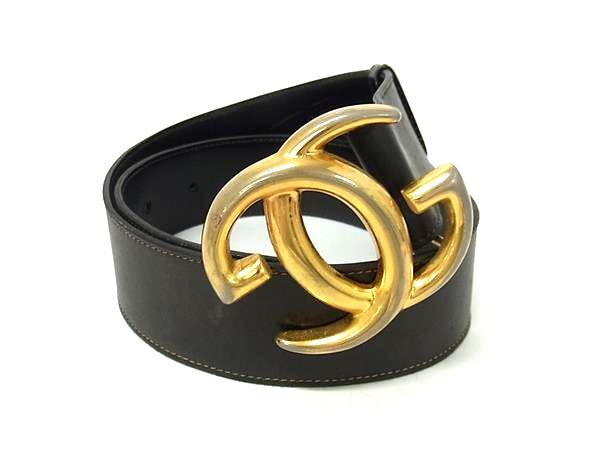 1円 CHANEL シャネル ココマーク レザー ゴールド金具 ベルト レディース メンズ ブラック系 FS5341
