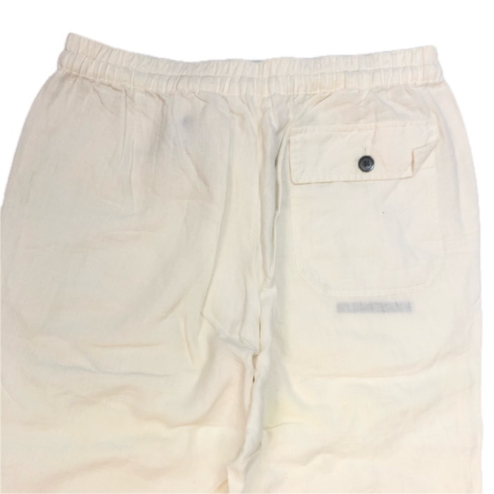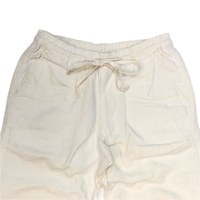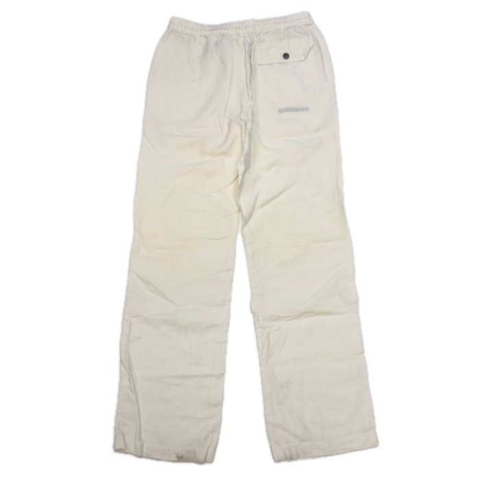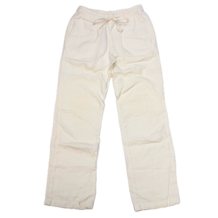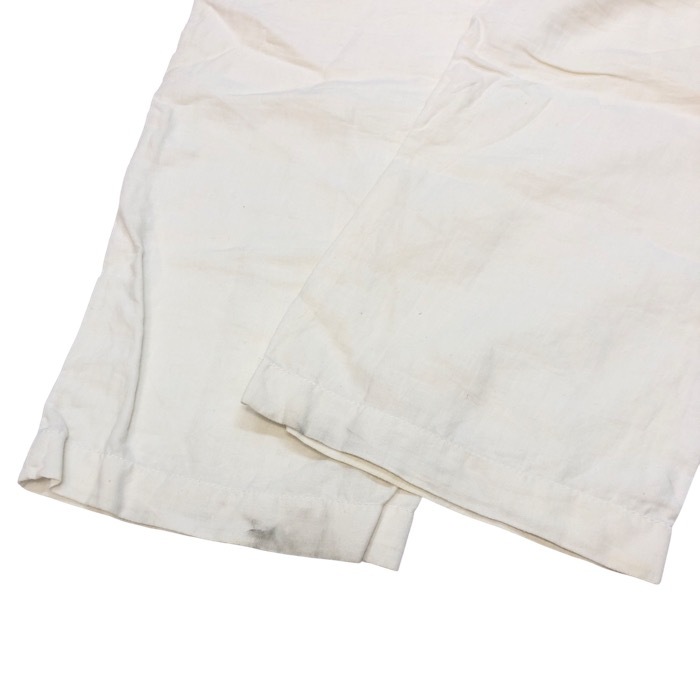 商品説明 | 【サイズ】M 平置採寸(ウエスト:約34.5cm・総丈:約101cm・股上:約24.5cm・股下:約80cm・わたり幅:約29cm・裾幅:約23cm) 【素材】麻100% 【季節】春夏 【商品補足説明】※サイズは平置採寸です。両足の裾に汚れ・シミあり。所々に変色あり。 |
