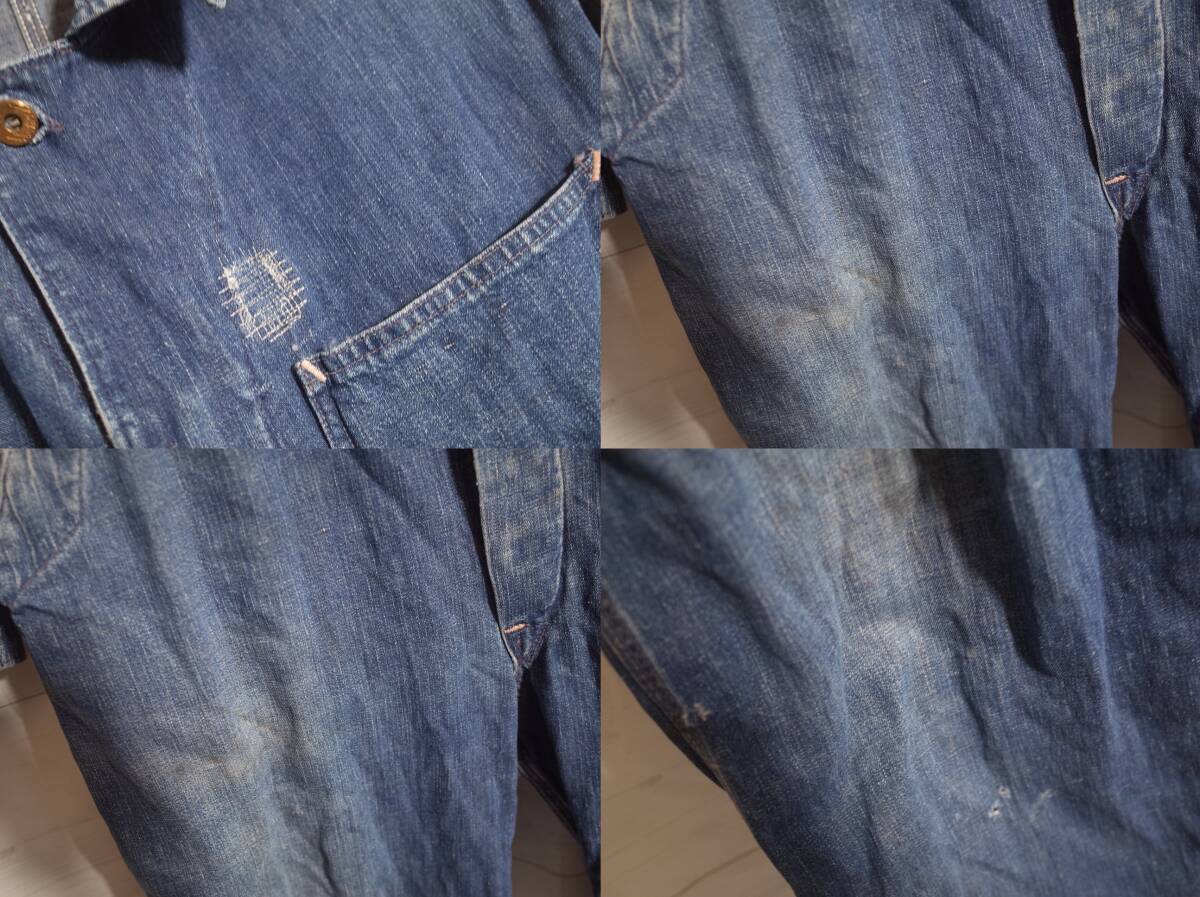 ご回覧ありがとうございます。お手数ではございますがトラブルの元になりますので、説明文は最後までお読み下さい。 こちらは、ヴィンテージ 40s~ carhartt カーハート デニム オールインワンになります。 復刻では無くオリジナルになります。 ドーナツボタン、セルビッジ(赤耳)など各所にヴィンテージらしいディテールの1枚になります。 タグは欠損しておりますが、ハートタグの初期頃のモデルとなります。 状態はフロントの下から3番目のボタンの変更、リペア、擦れ、小穴など全体的にフェード感のある1枚になりますが、 半世紀以上前の物となっておりますので、ご理解下さい。 元々ブラウンダックがメインのブランドだけにデニム素材のアイテムは希少です。 |