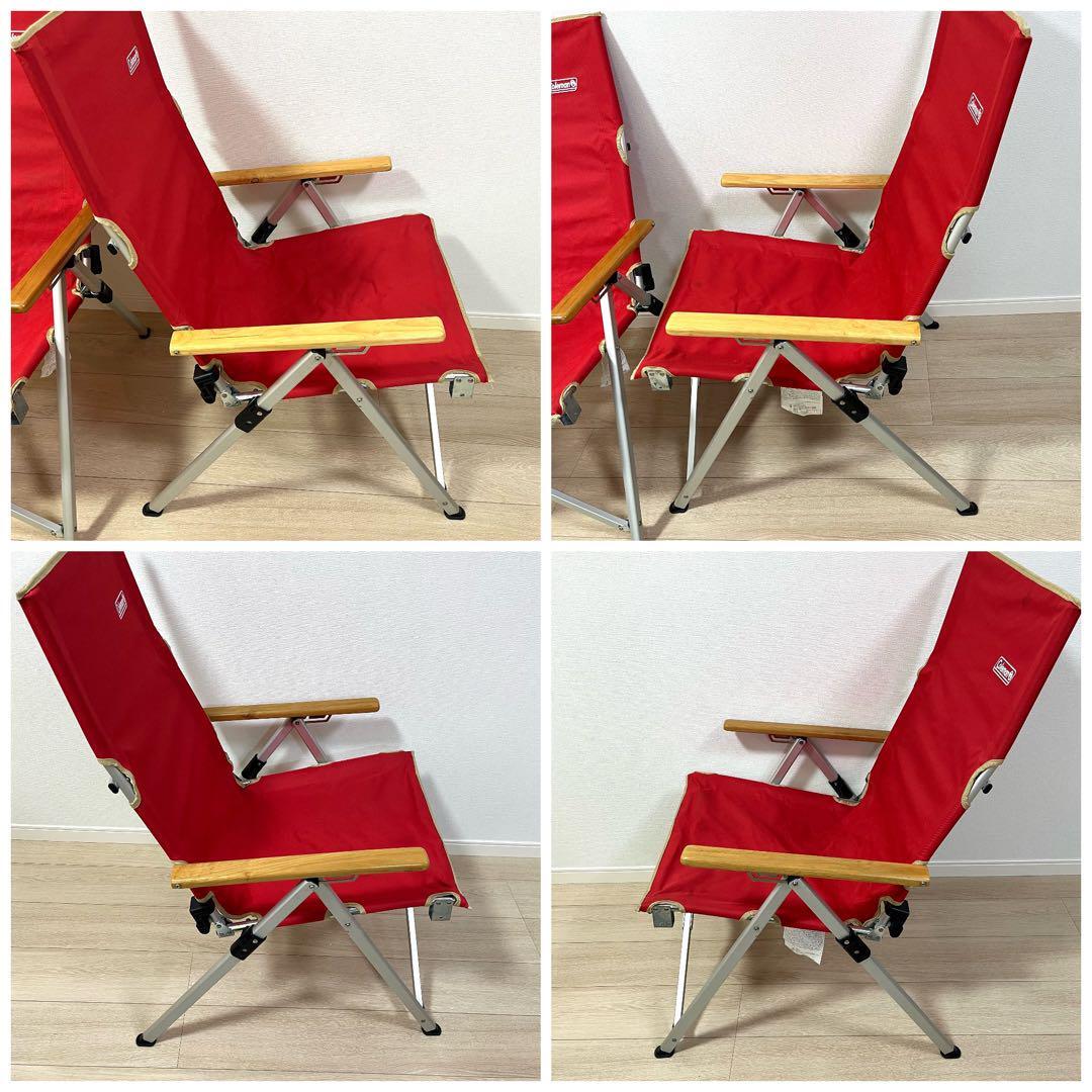そ110【2脚セット】コールマン レイチェア レッド Coleman 木製肘置き付き折りたたみ椅子 リクライニング コンパクト