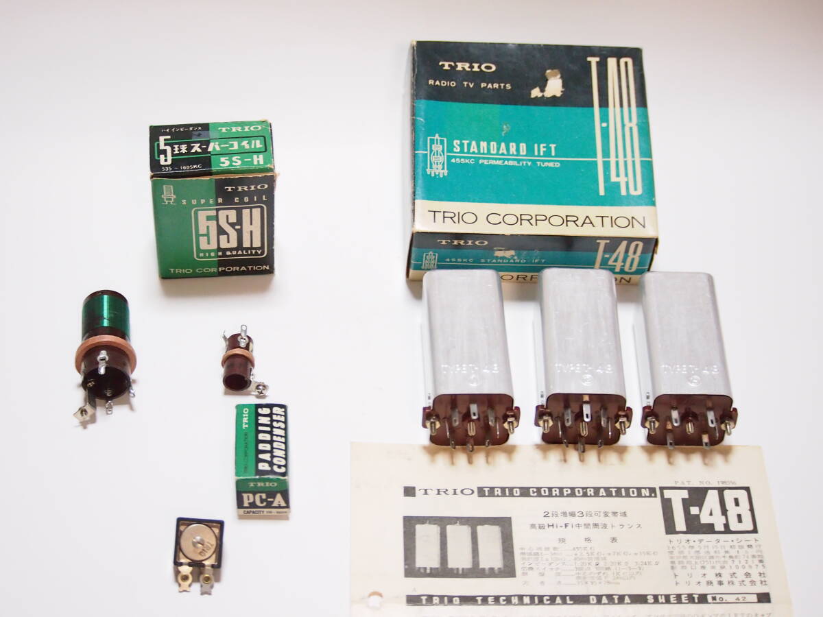トリオの2段増幅3段可変帯域IFT T-48(未使用品)、アンテナコイル5S-H、パッティングコンデンサのセット