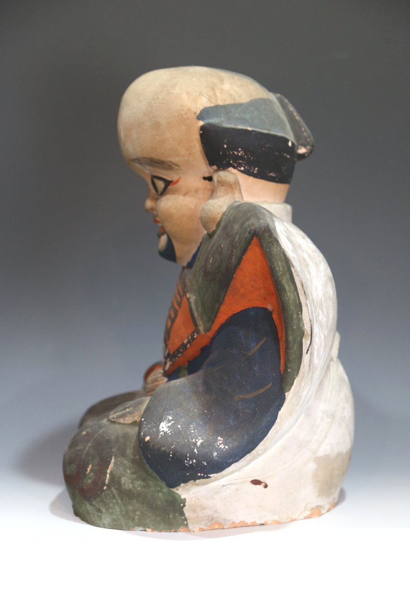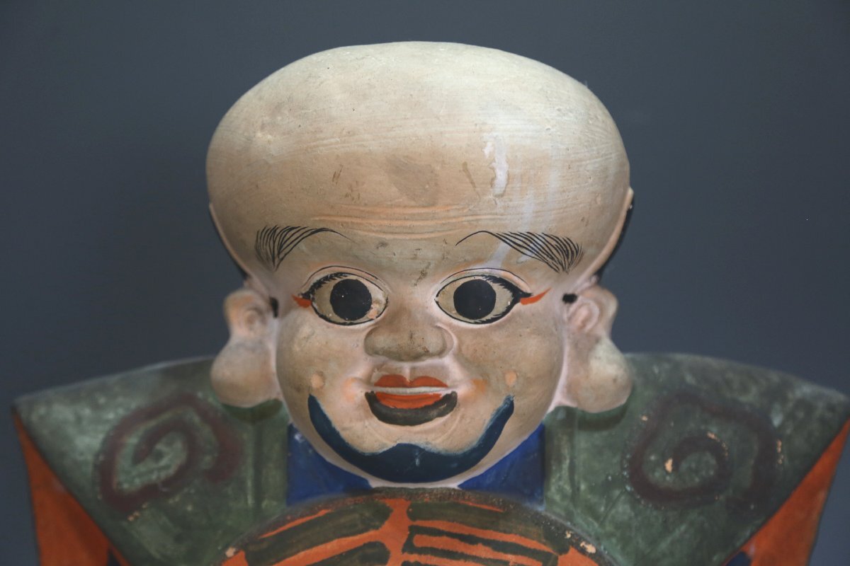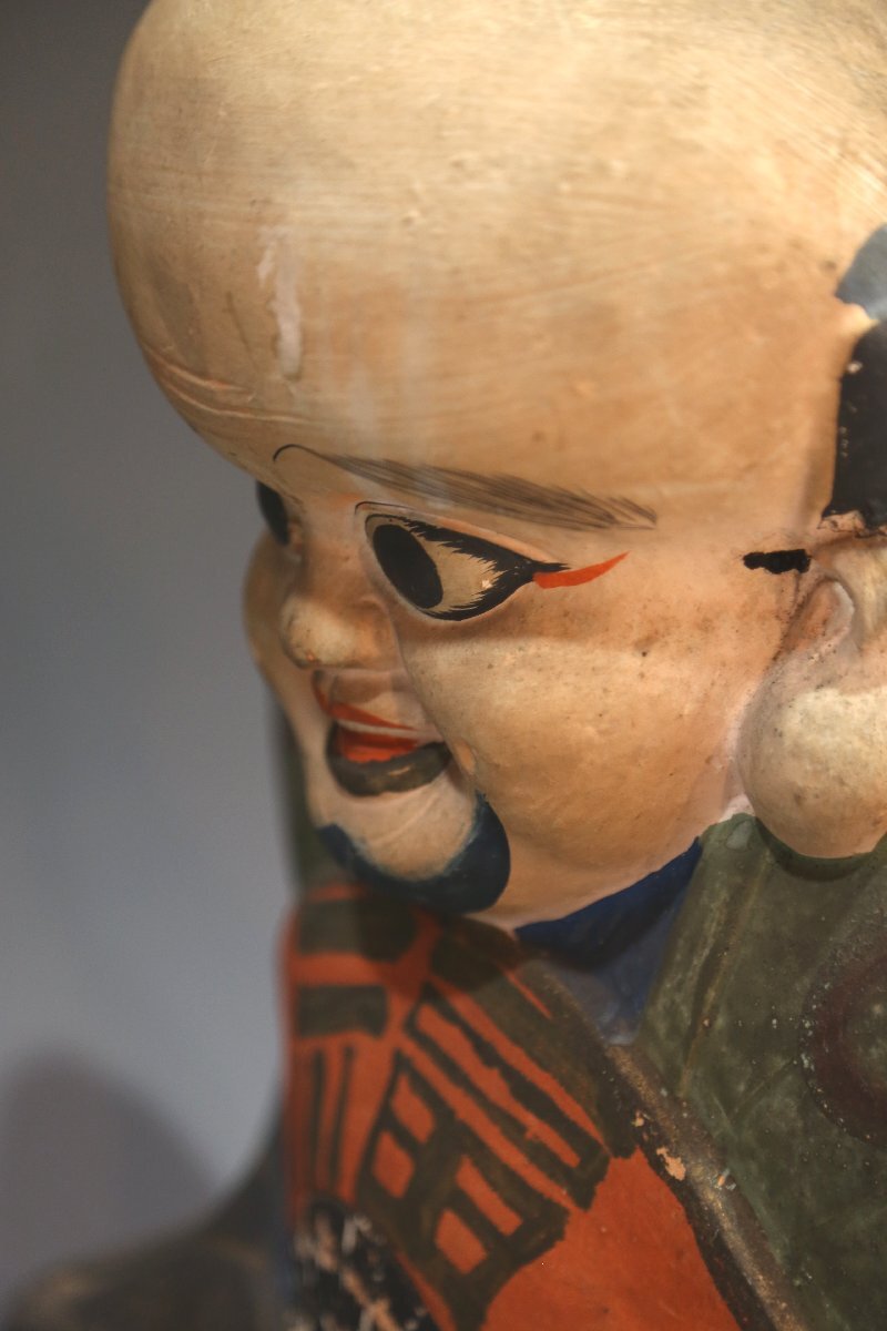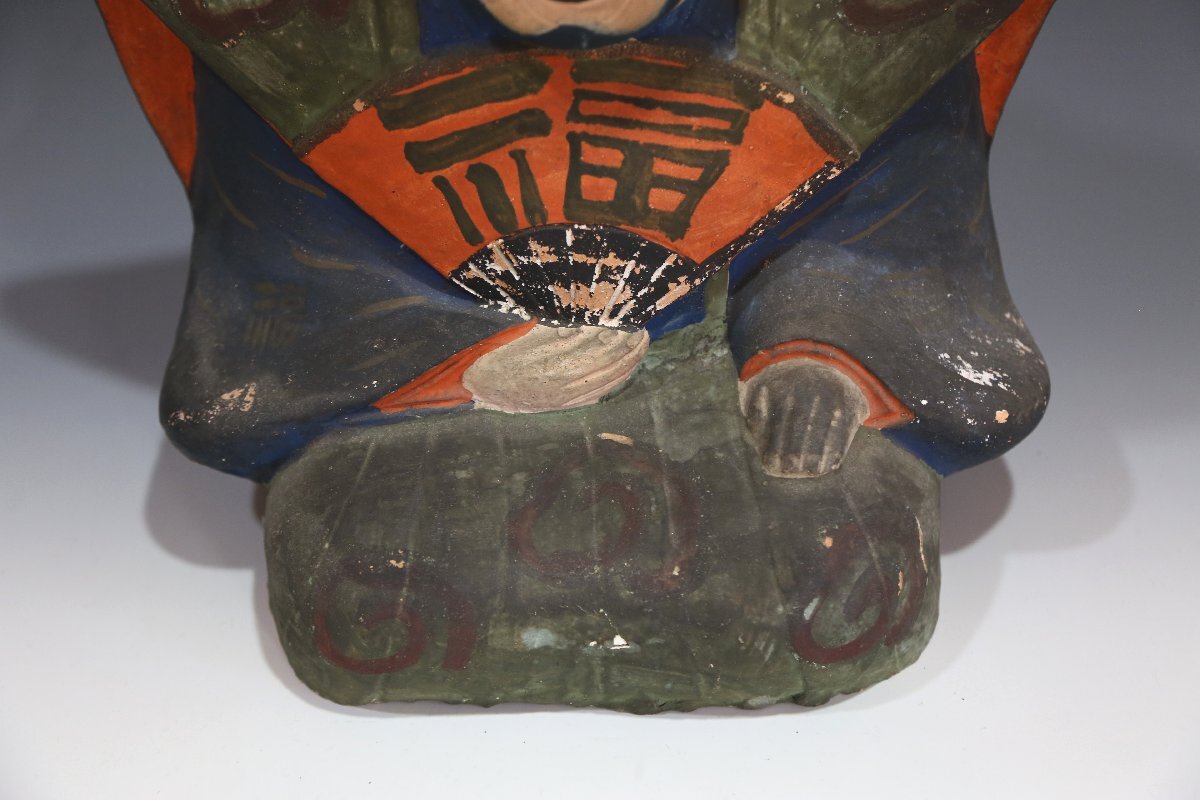 大きなおでこの古い福助です。江戸期の福助でヒゲも生えています。このような大きな福助は滅多にお目にかかりません。おでこもかなり出ています。経年の剥がれあります。横38cm、縦42cm。ノークレーム、ノーリターンでお願い致します。この他にも出品しておりますので、ご覧下さい。ここをクリック
