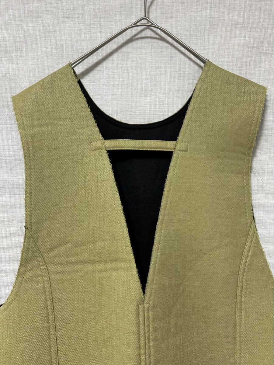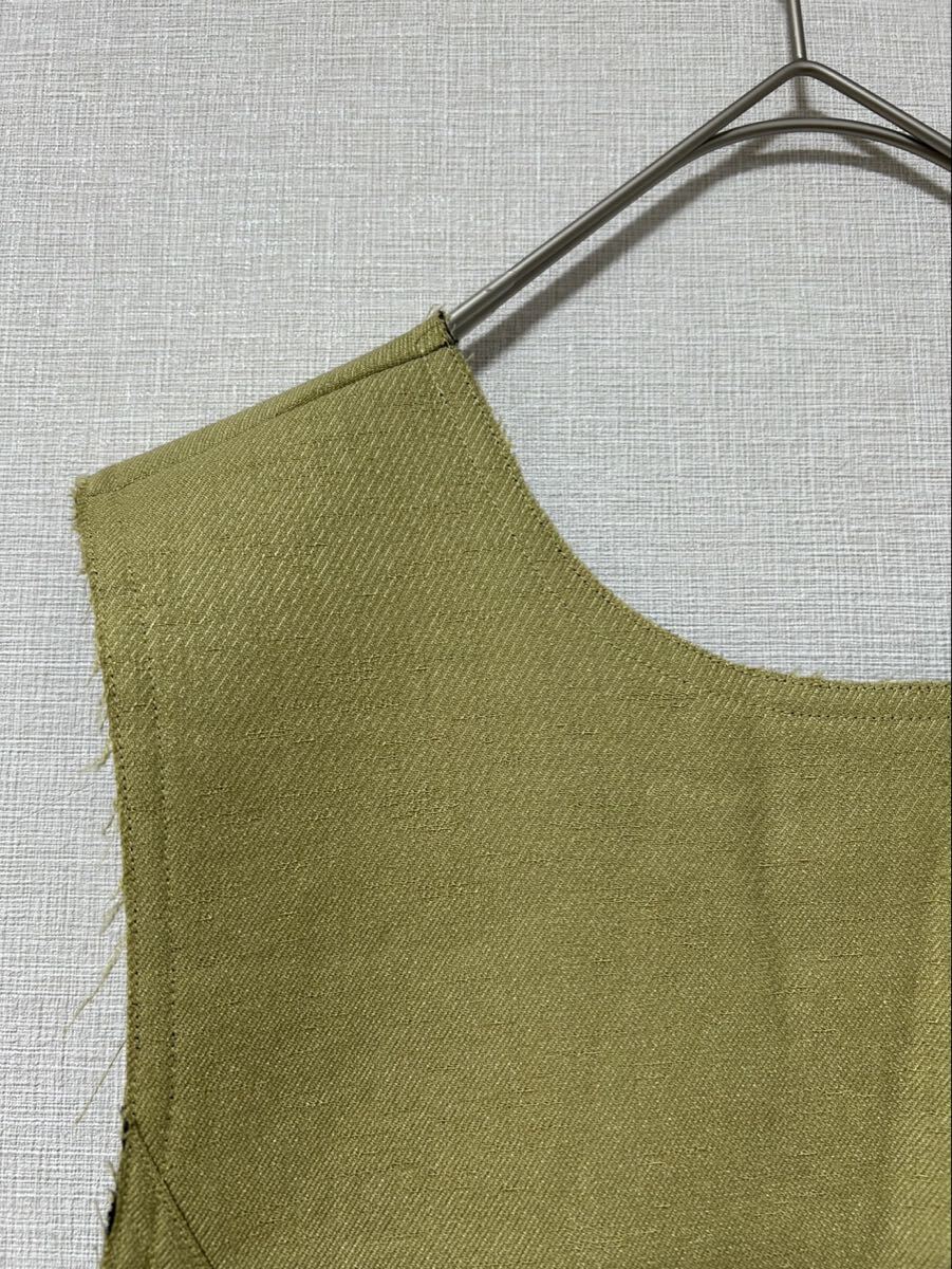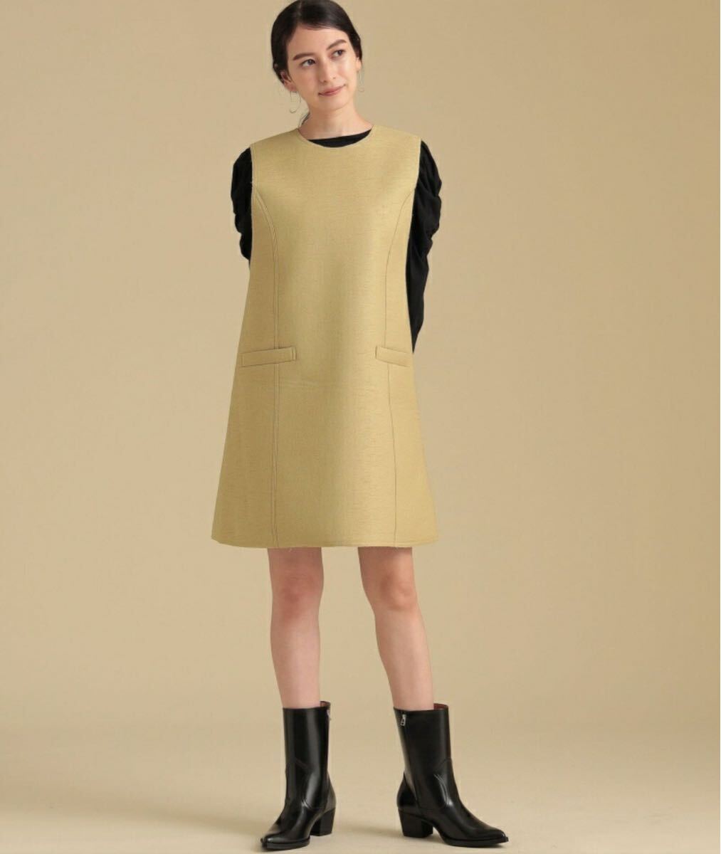 独自のスタイルを楽しむ新感覚ワンピース独特な風合いが魅力のワンピース。表面にフシがあるスラブ糸を使用した生地と、ウレタンを貼り合わせたボンディングを使用。表は麻のようなさらりとした肌触りをしていて、裏面はふっくらとした手触りになっています。細めのストレートシルエットで、前身頃に入ったパネルの切り替えがポイント。襟ぐりやアームホール、裾はあえて裁ち切り仕様にして裏面の芯がちらっと見えるように仕上げました。後ろ襟ぐりは深めのV開きでバックスタイルもおしゃれに◎。ボトムスにスカートやパンツなどを合わせてレイヤードしたり、ロングブーツを合わせたスタイリングもおすすめです。