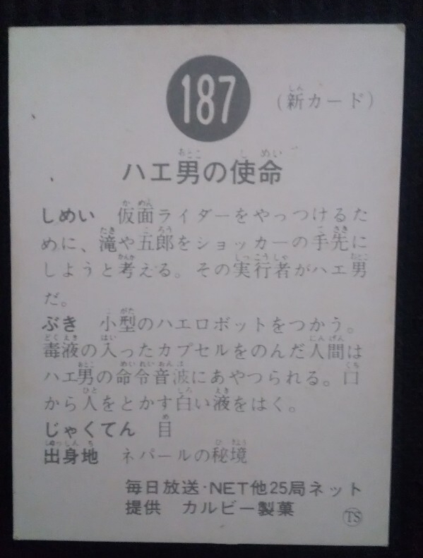仮面ライダーアルバムにて大事に保管していましたが、当時の子供(私)が扱っていたものですので、多少の汚れや経年劣化はあります
