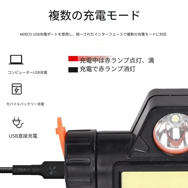 【1円スタート 新品未使用】充電式 COB LED ヘッドライト USB 磁気付き 超高輝度 防水 作業灯 トーチ 釣り 登山 キャンプ 夜間作業 A17