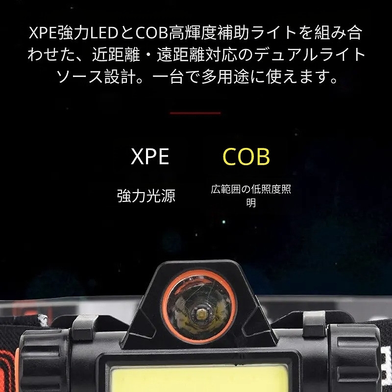 【超高輝度!USB充電式COB LEDヘッドランプ】