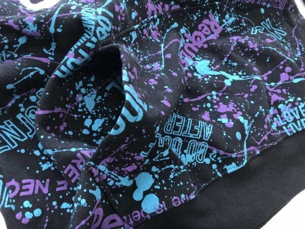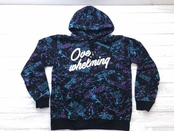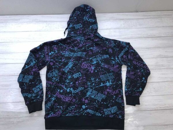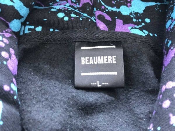 ボウメール BEAUMERE ストリート サイケ クラッシュペイント 総柄 裏起毛 スウェット フーディー パーカー メンズ 綿混合 L 黒青紫です。