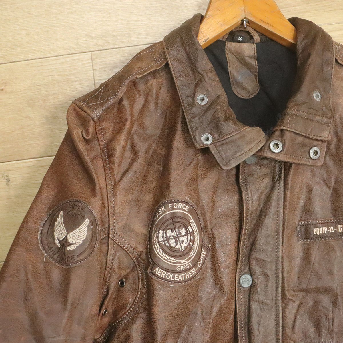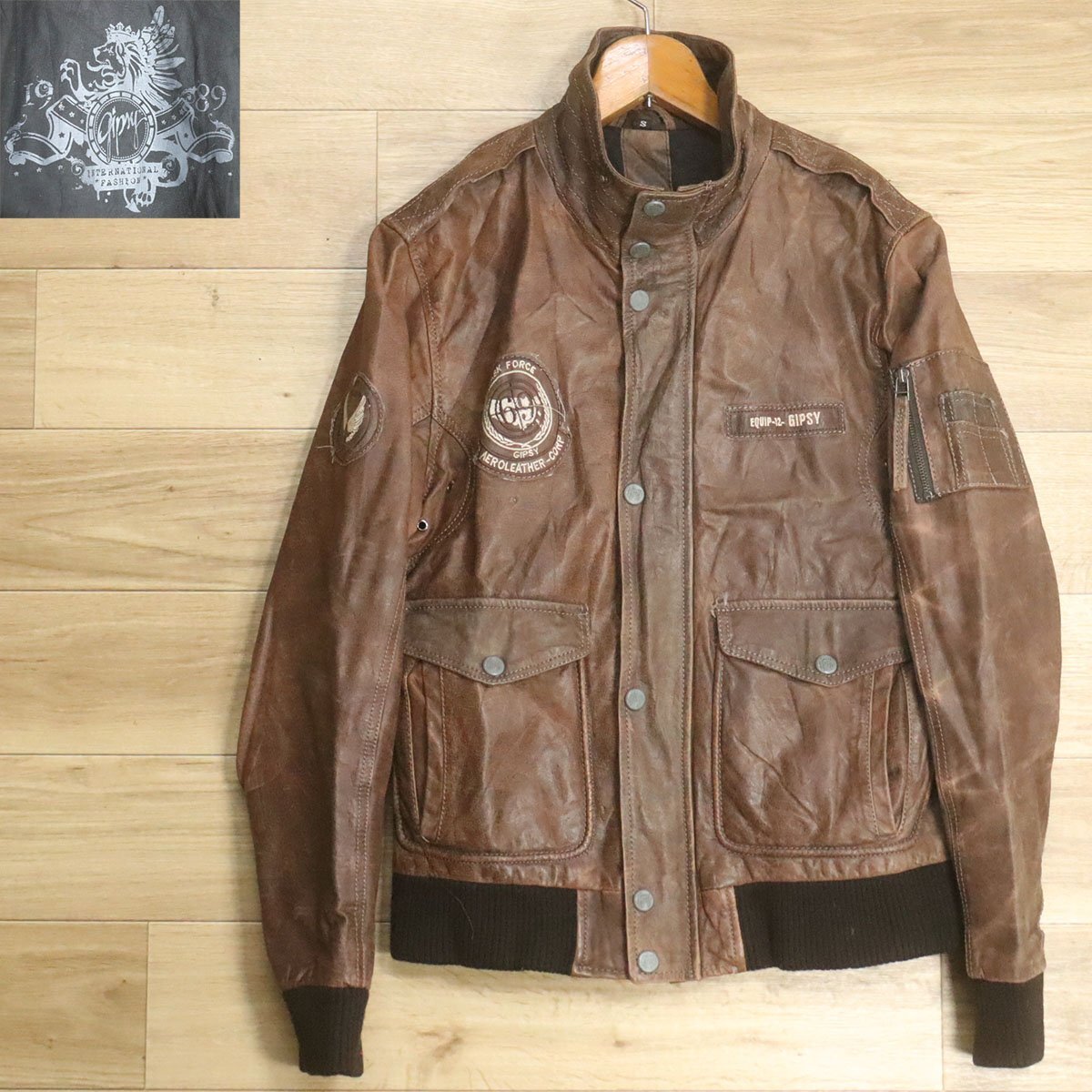 ?13T/S6.9-2 Gipsy レザーフライトジャケット 本革 ボンバージャケット レザージャケット ブラウン S 革ジャン 皮ジャン