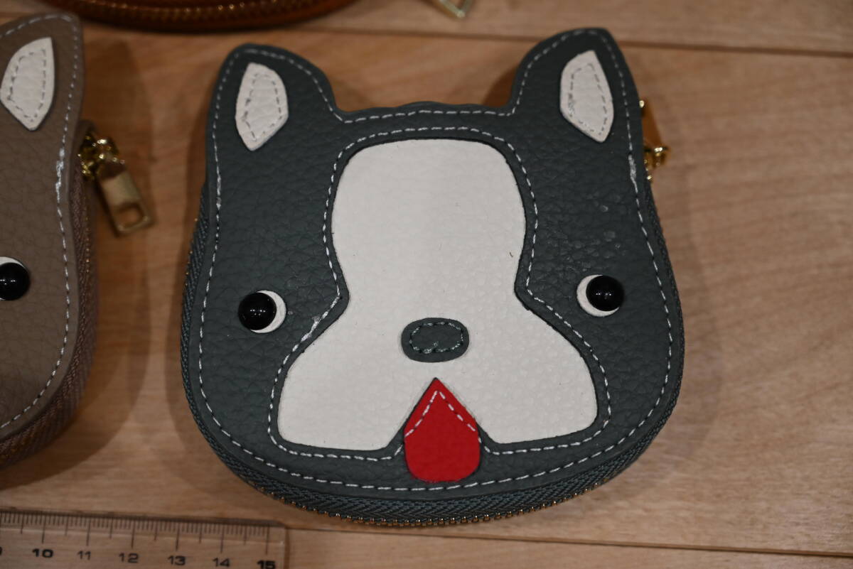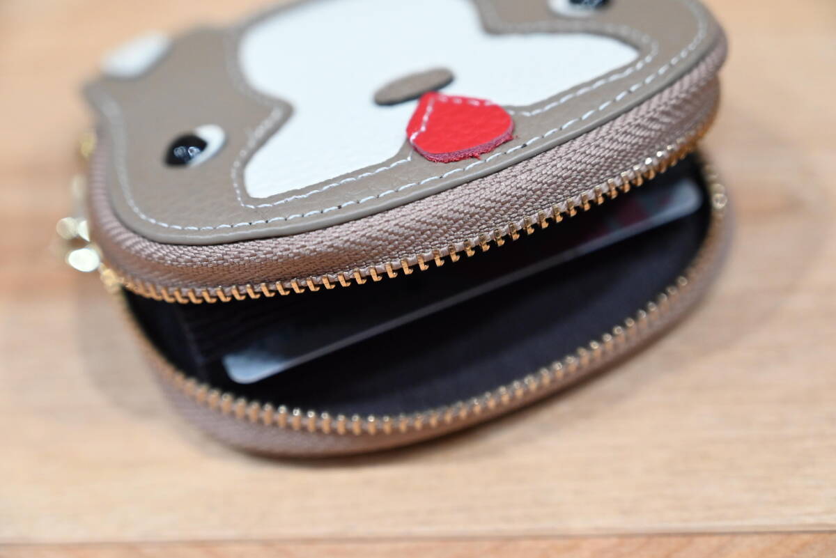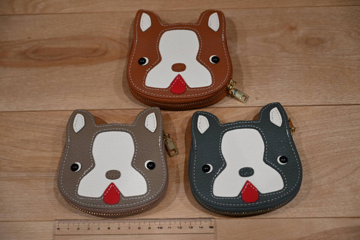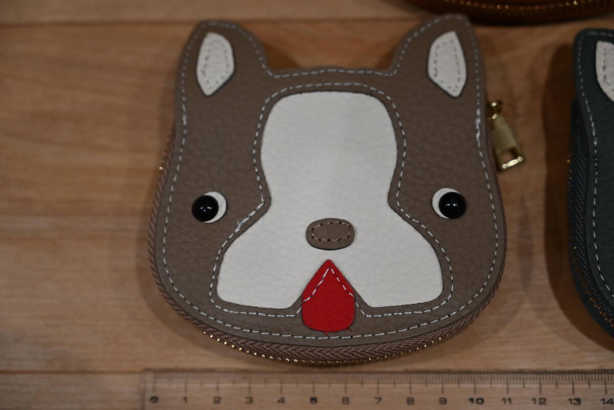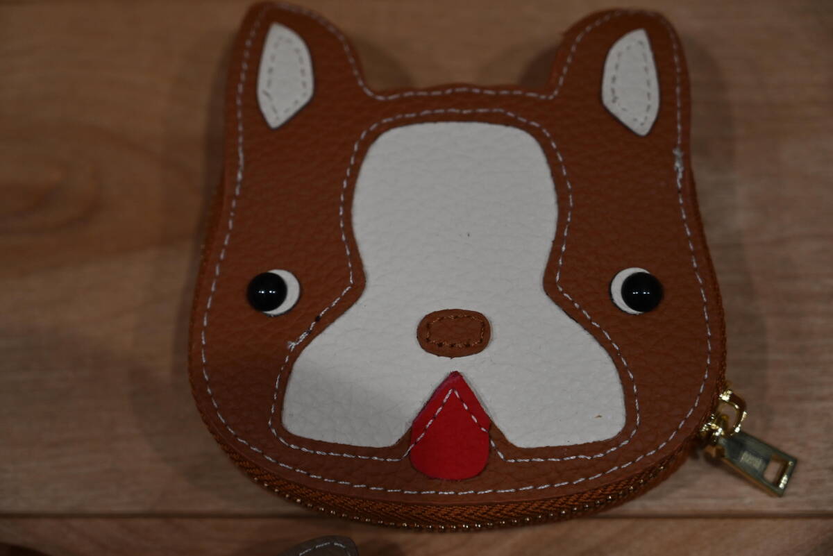 | ★ハンドメイド 牛革 イヌ顔のカードケース ブラウン or グレー or ベージュ★未使用品! | |||