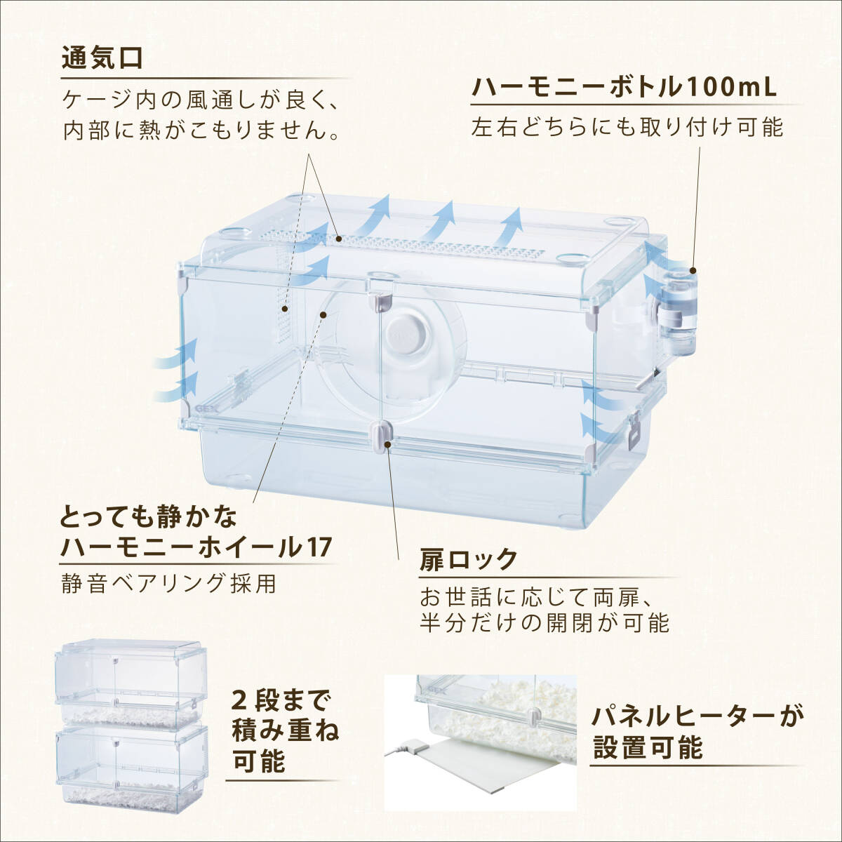すみずみまでキレイにお掃除できる、組み立て簡単なスターターセット。中の様子がよく見えて、正面からお世話ができるのでペットとの距離がもっと近く感じられます。