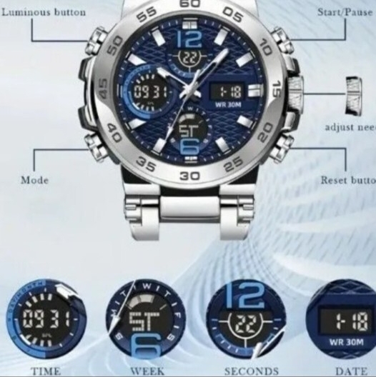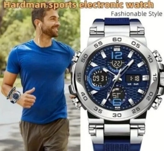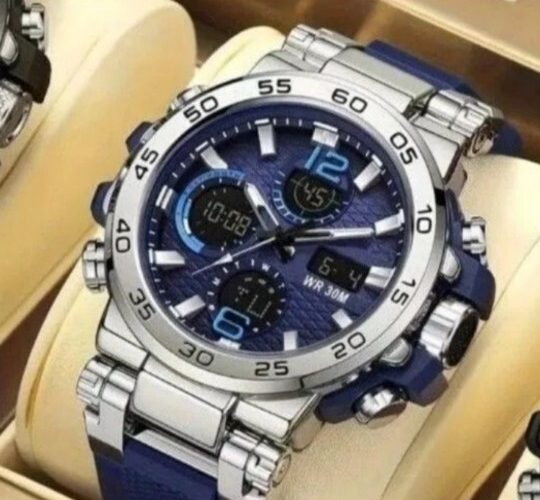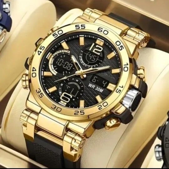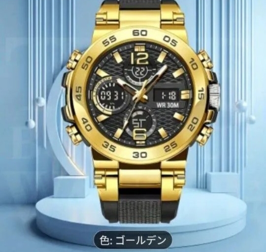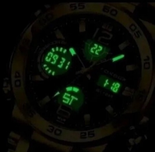 アナログとデジタルの両方で時間を確認できるアナデジミリタリーウォッチです。