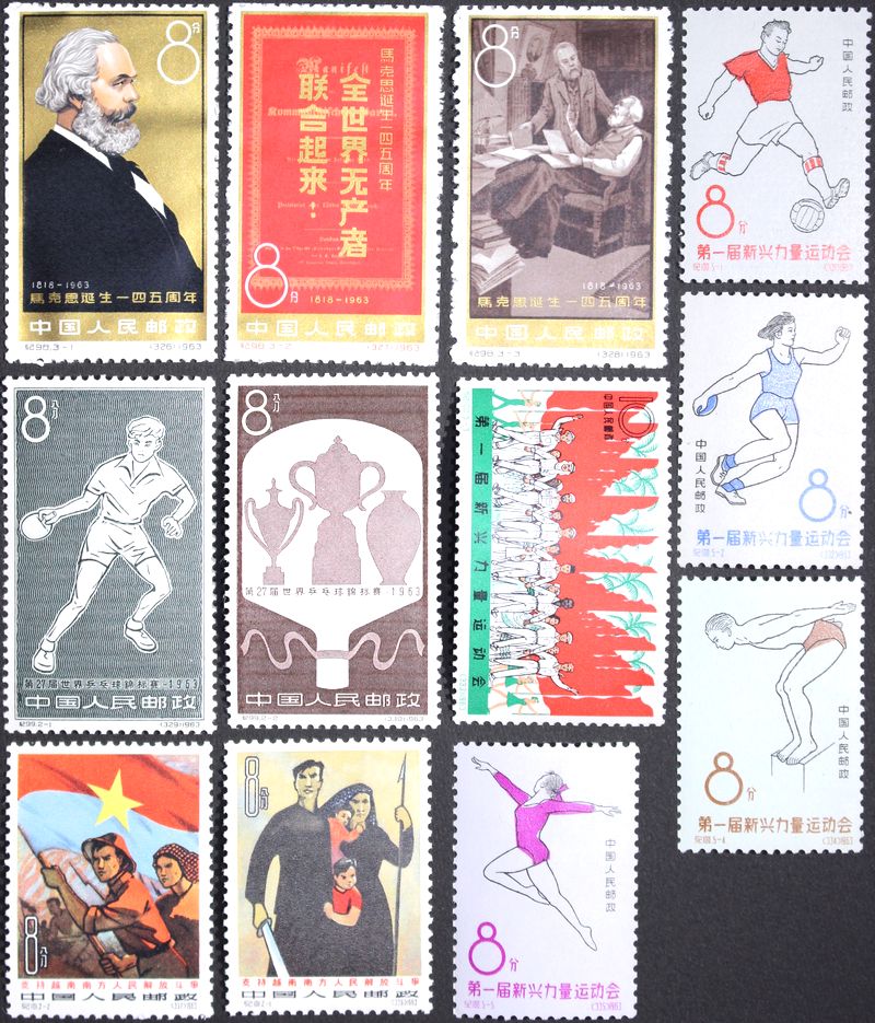 ● 商品・・・未使用 中国切手 紀98 マルクス誕生145周年 3種完 紀99 第27回世界卓球選手権大会 2種完 紀100 第1回新興勢力体育大会 5種完 紀101