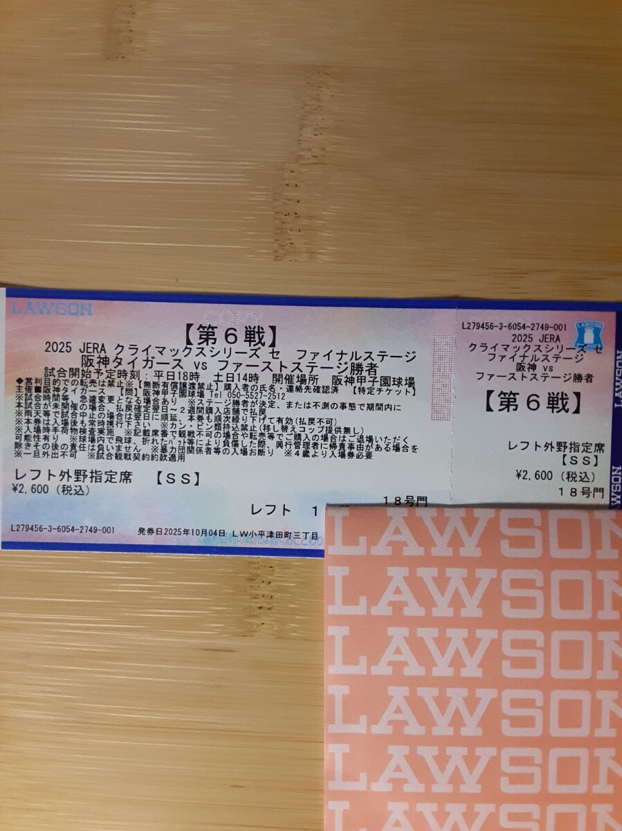 クライマックスシリーズ ファイナルステージ第6戦 レフト外野指定席(12列~14列、221番~235番、通路側)1枚の出品です。