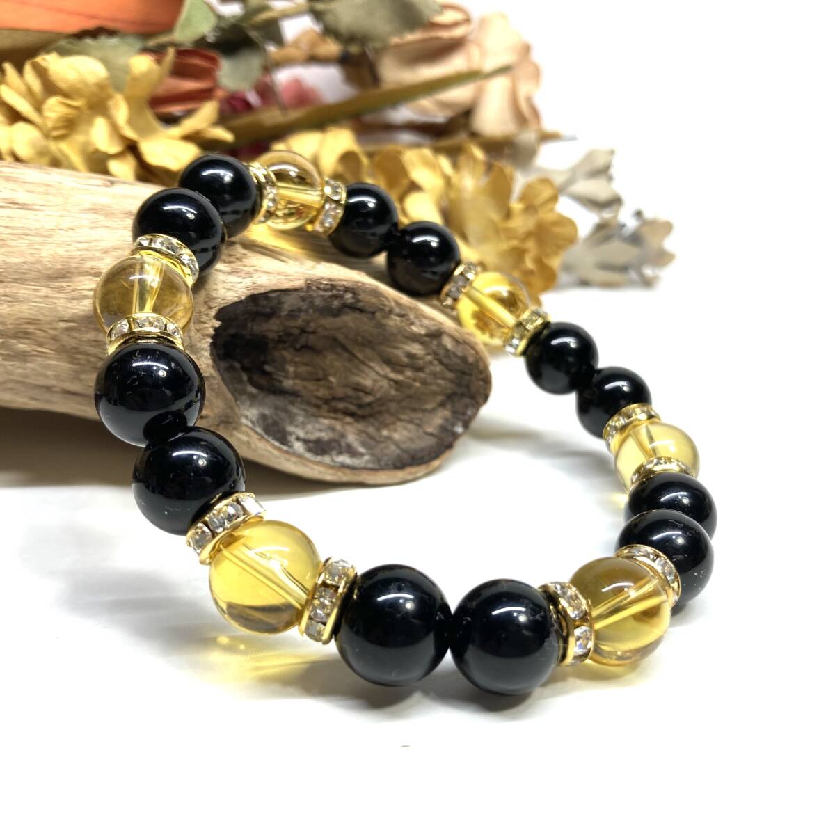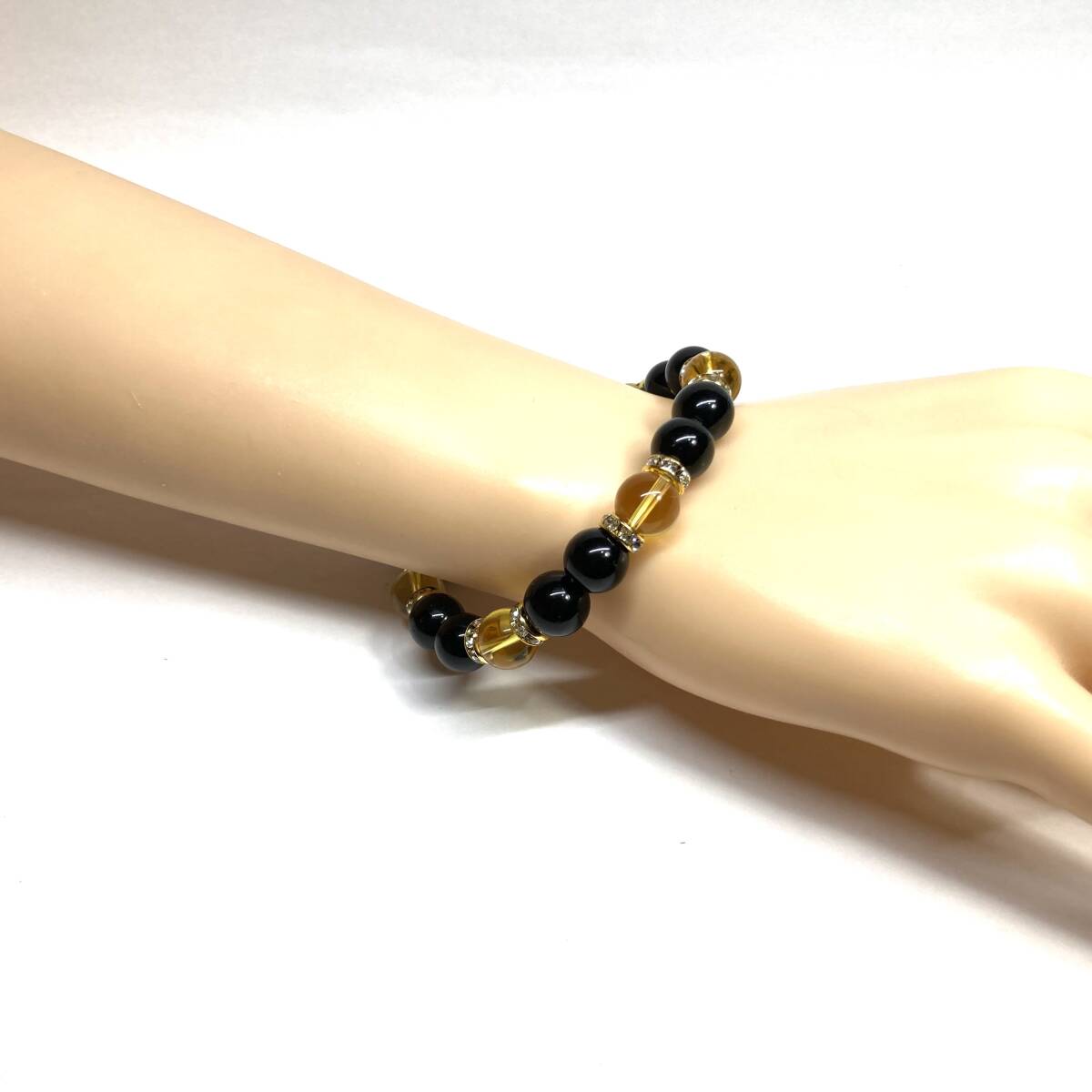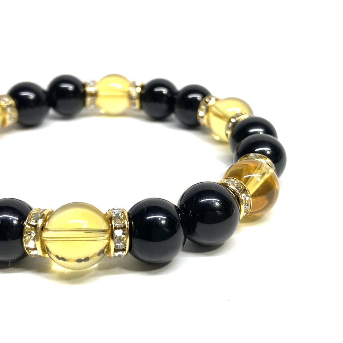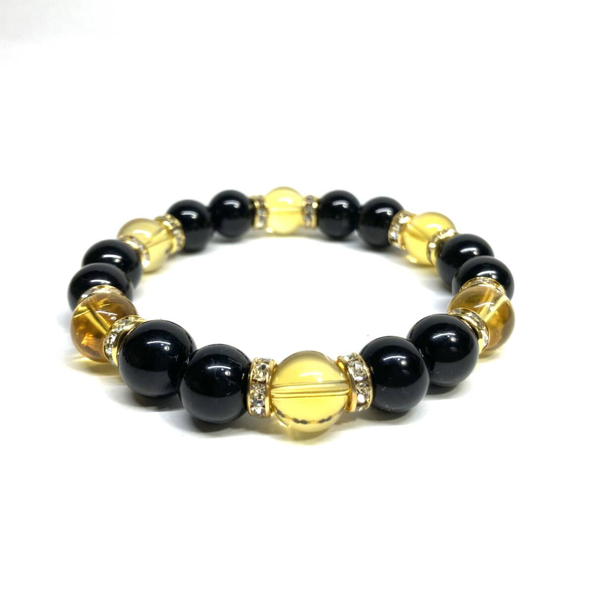 モリオン&シトリン パワーストーン ブレスレット 天然石ブレス (ゴールド) 10mm メンズ・レディース 厄除け 金運 ☆