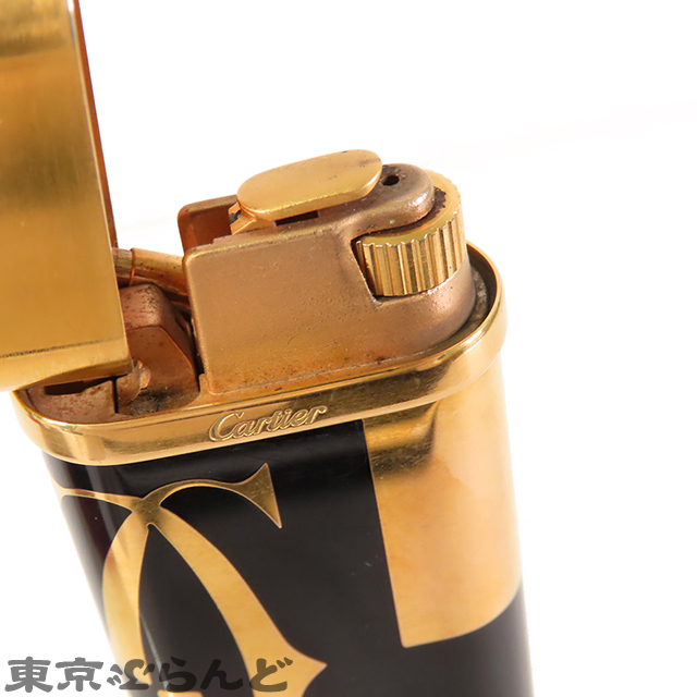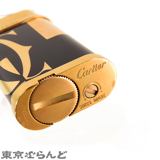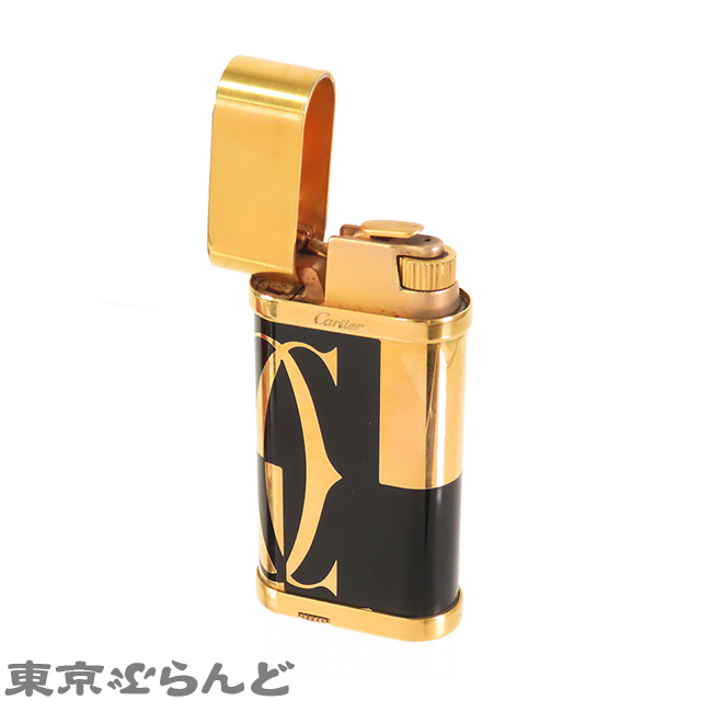 101816365 カルティエ CARTIER ロゴタイプ デコール ライター CRCA120211 ゴールドxブラック メタル オーバル ライター 着火OK