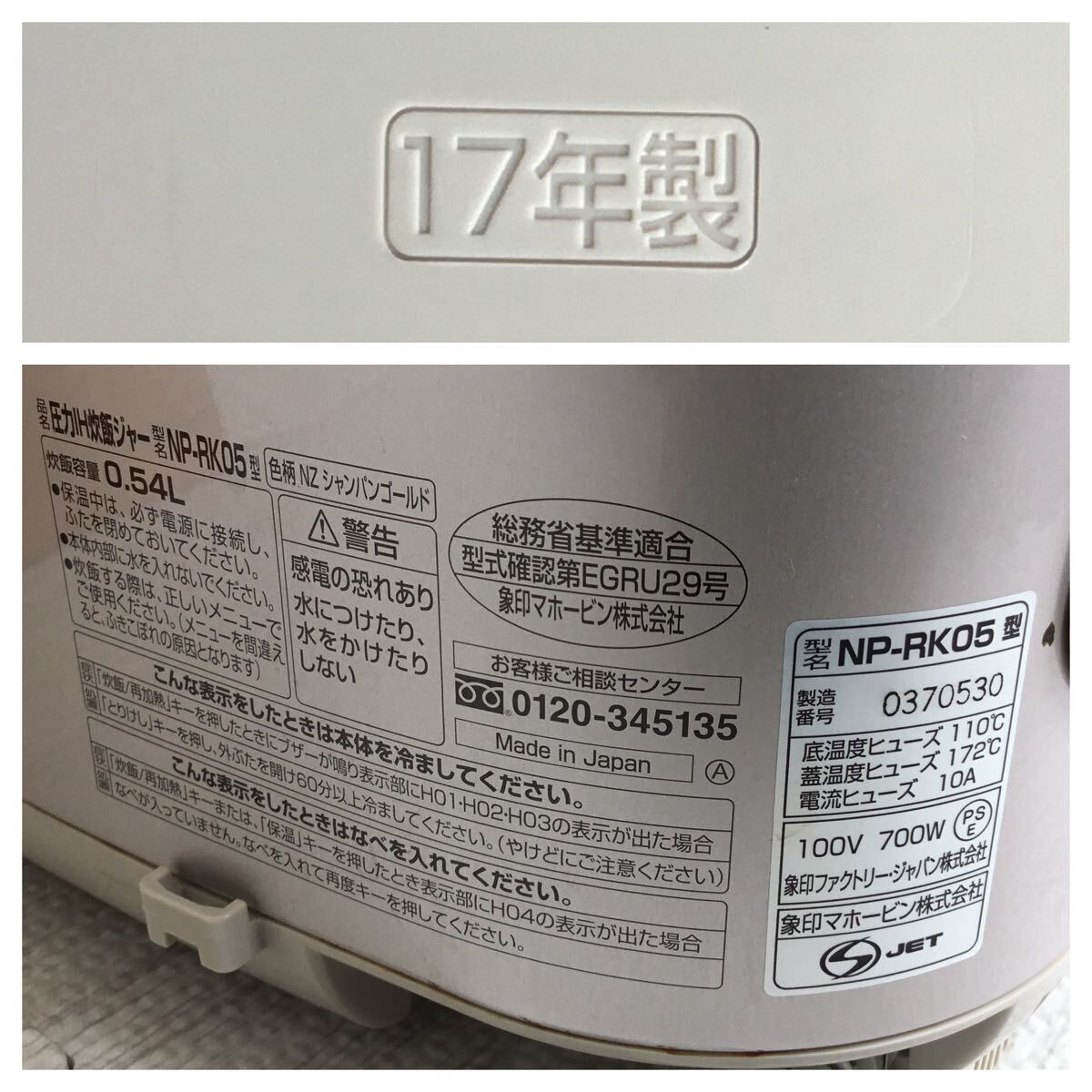 ZOJIRUSHI 圧力IH炊飯ジャー2017年製 NP-RK05 象印 3合 シャンパンゴールド 動確品 手渡し歓迎 領収書発行可 【埼玉県より発送】 |