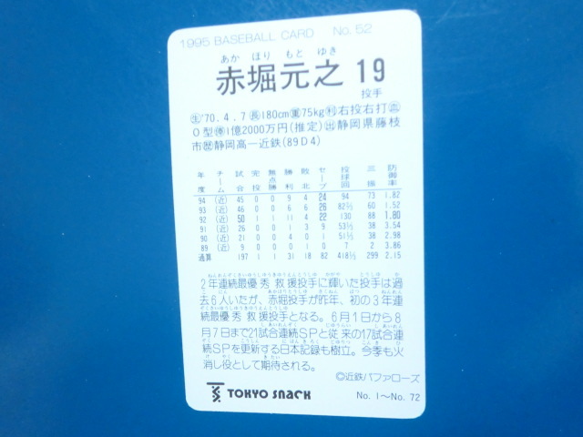 カルビー プロ野球 1995 No.52 赤堀元之 東京スナック