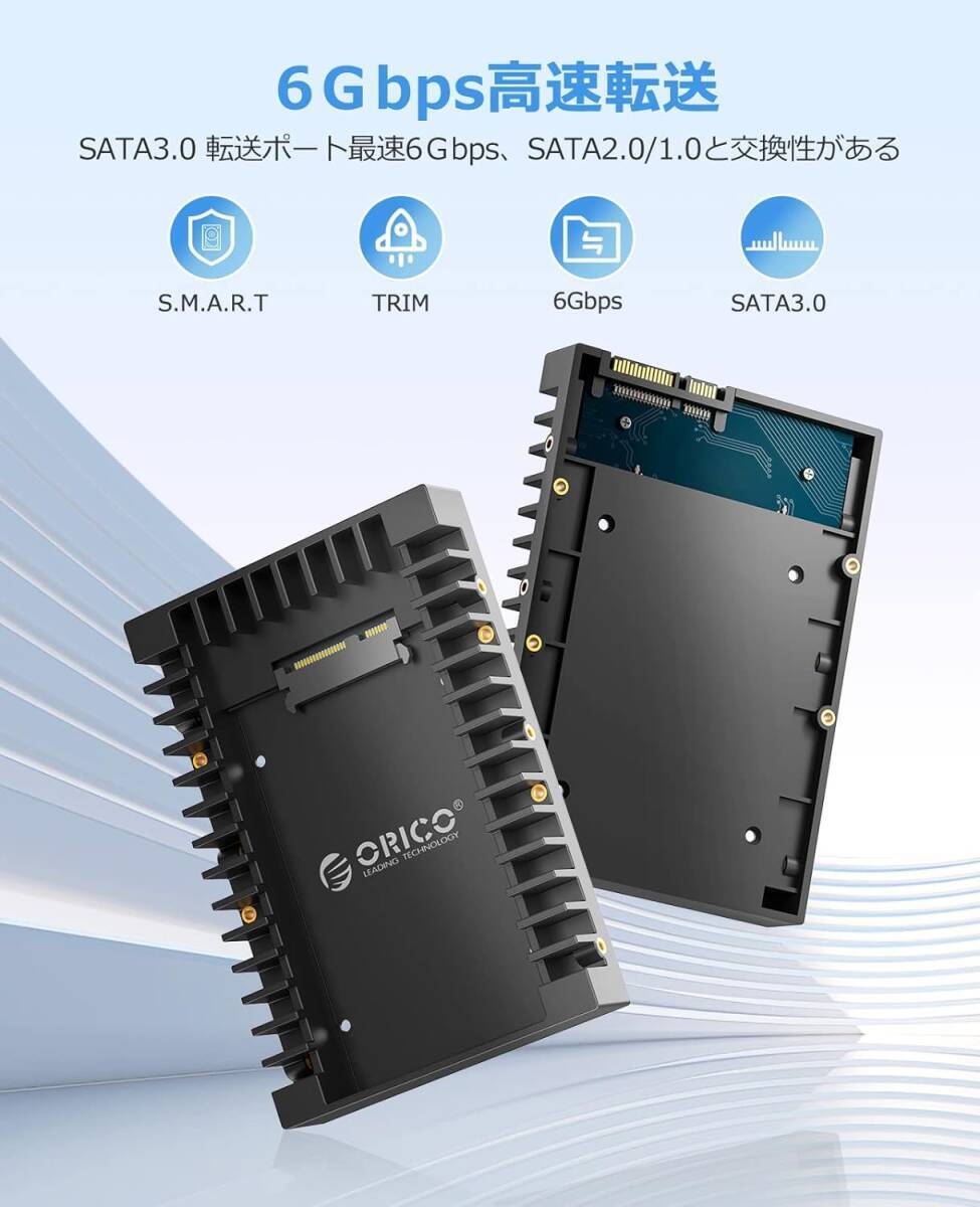【高速転送】SATA3.0通信プロトコルを採用し、最大転送速度は6Gbpsです。HD映画や資料などを素早く転送できます。Windows、Mac OS、Linuxと互換性があります。