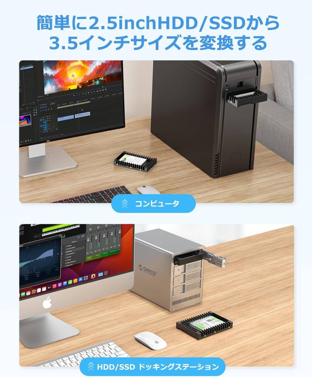 ORICO 2.5 → 3.5変換 2.5インチ HDD / SSD 変換マウンタ SATAインターフェース内蔵 HDDケース 3.5インチ 変換ブラケット ネジ付き ブラック 1125SS