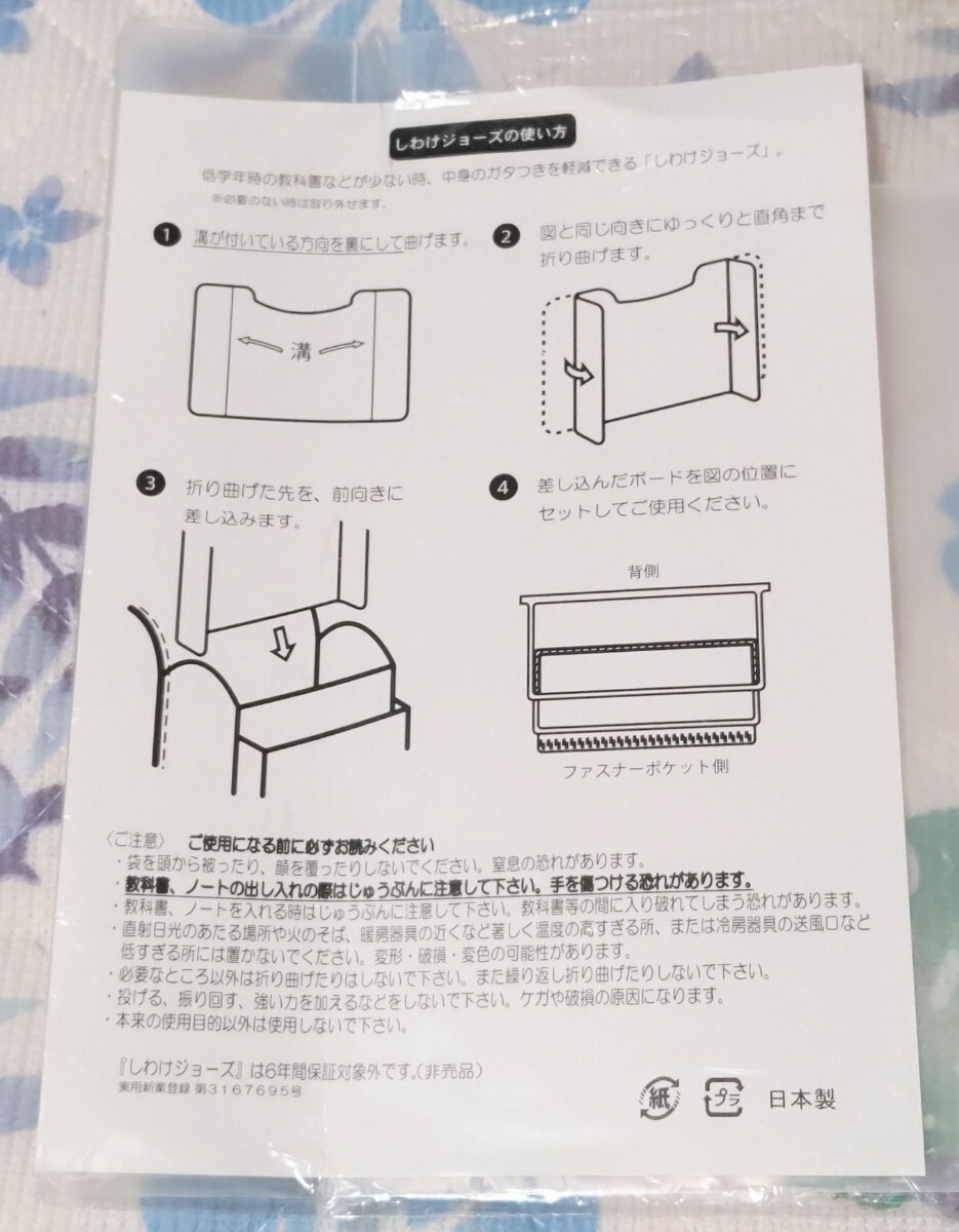 ランドセルの中のガタつきを抑える 日本製 男児も女児も