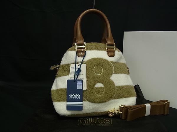 ■新品同様■ muta ムータ パイル8 パイル&レザー 2WAY ハンドバッグ ショルダー レディース ベージュ系×ホワイト系 FP5851