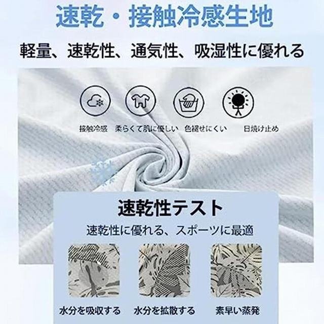 素材:ポリエステル90% +スパンデックス10% 冷感生地を使用!独特な紡織技術で織った通気性と速乾性に優れな生地を使用、汗ばむでも蒸れません。速乾性に優れているので濡れても気にならず、海でも便利! 動きやすいしなやかさで、運動時にも重宝! 洗濯してもすぐに乾くので。 さわやかな肌触りも気持ちいいです。 より効果的に紫外線をカット。指穴付きになったデザインで、手の甲までしっかり覆えるのがポイントです。 男女兼用の薄手の日焼け止めパーカー、海水浴やプールはもちろん、登山や釣り、バーベキューなどのアウトドアシーンでも幅広く活躍します。 海やプールに行く時、水着のアウターとしてはもちろん、通勤通学の時も日焼け止め用服としてtシャツの上に羽織るのもいいですし、寒すぎる冷房の中に必須のアウターとしても便利です。 日焼け止めマスクをもう1つ持参することを省くことができて、首と顔の皮膚を保護することもできます。紫外線を98%以上カット!(UVカットUPF50+) 軽量コンパクトでカバンに入れて持ち運びにも便利です。 無地でシンプルなデザインで、幅広い方にオススメ!、カップルで旅行にも使える!軽量で通気性がよく、肌に優し