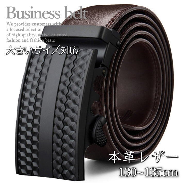 130~135cm 大きいサイズ ビジネスベルト メンズ 本革 レザー 本皮 サイズ調整可能 父の日 7987823 ダークブラウン 新品 1円 スタート