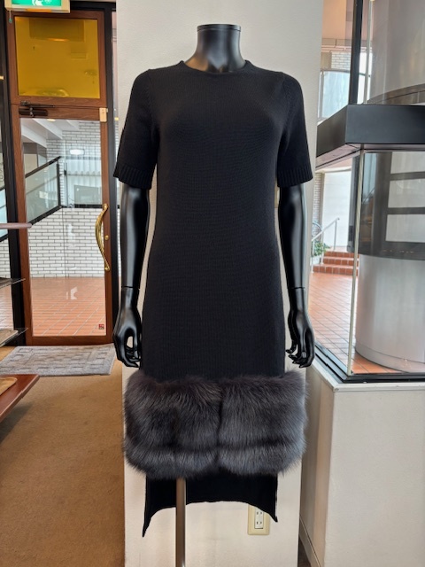 ☆イレブンティ(eleventy)のファー付半袖ニットワンピース(黒)/¥100,000☆