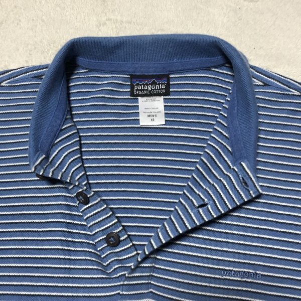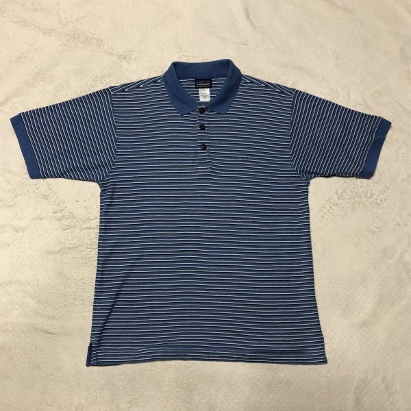 パタゴニア Patagonia 半袖ポロシャツ 鹿の子 ロゴ刺繍 ボーダー XSサイズ