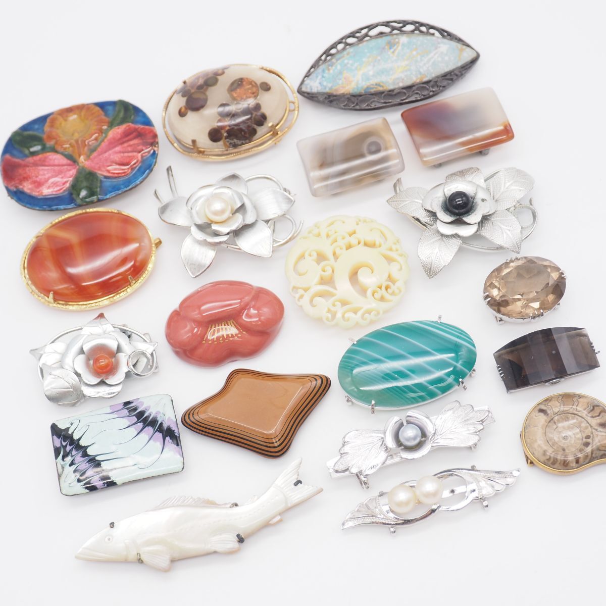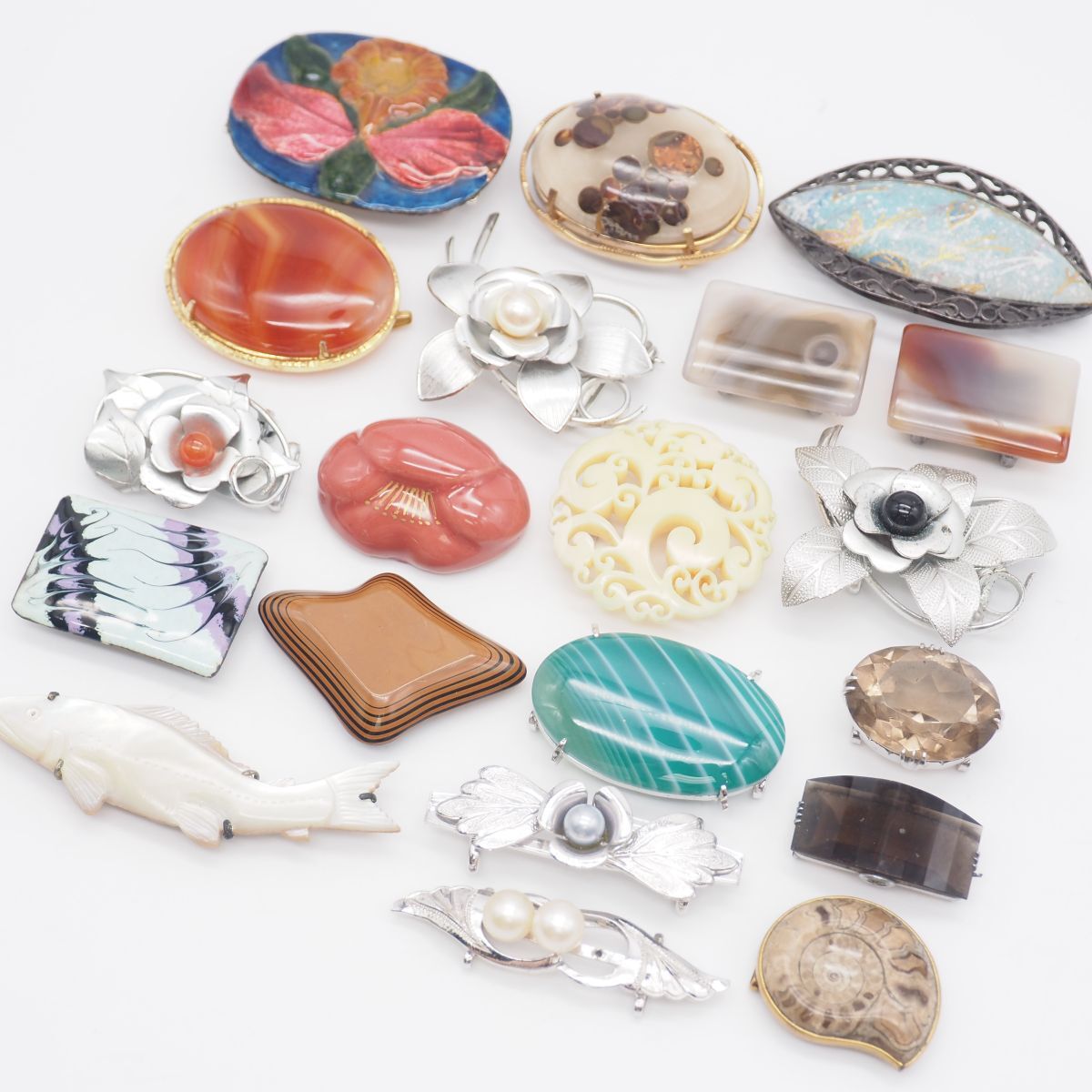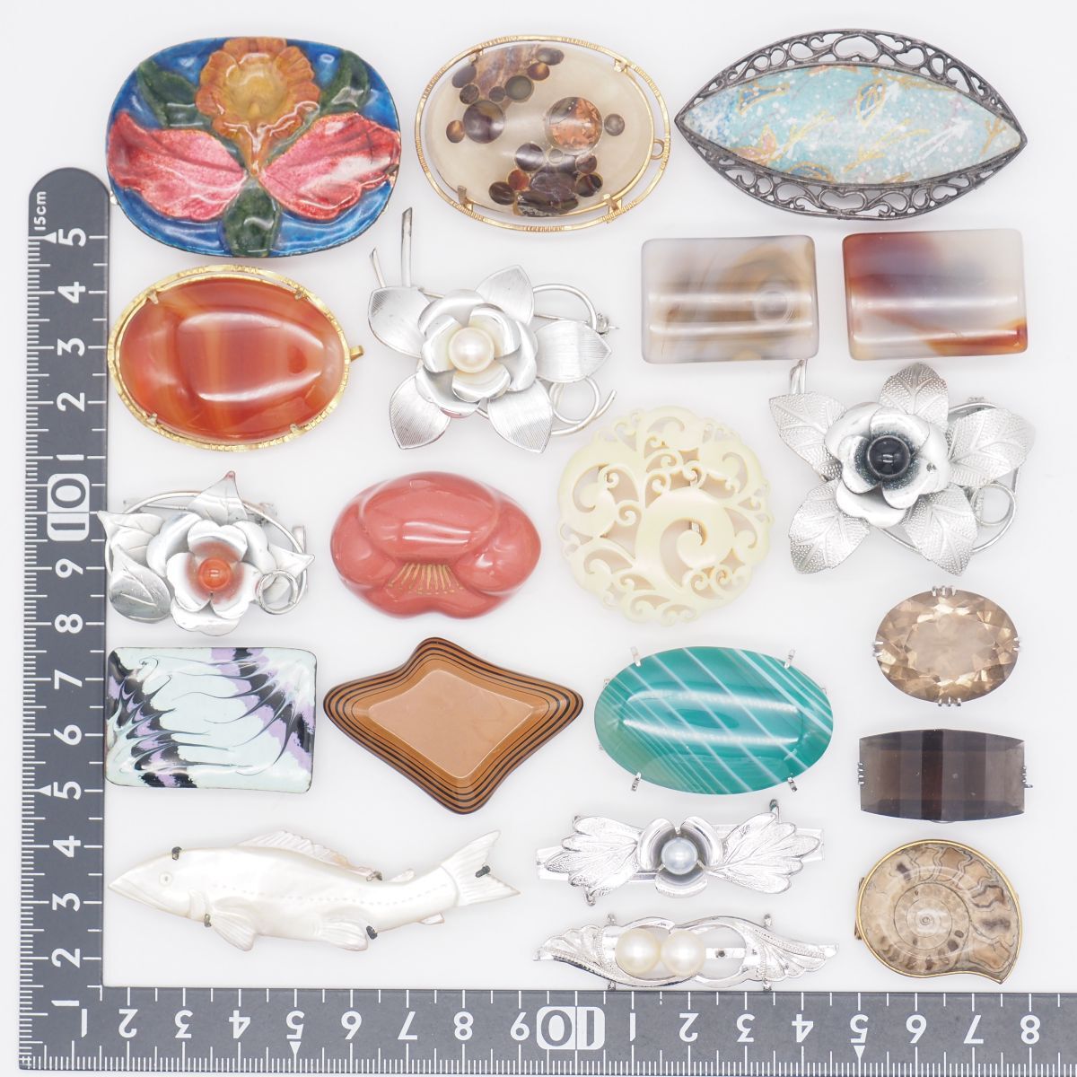 (WOB0912) 1円 帯留め 20個 大量セット 七宝 陶器 瑪瑙 メノウ 天然石 シルバー アンティーク 等 まとめて