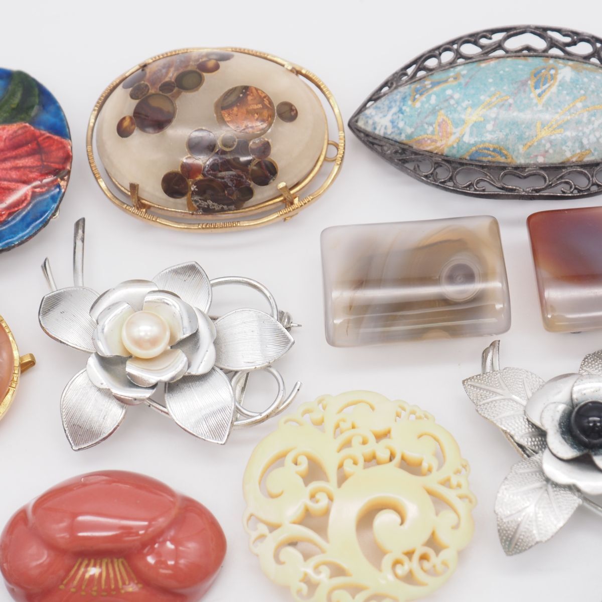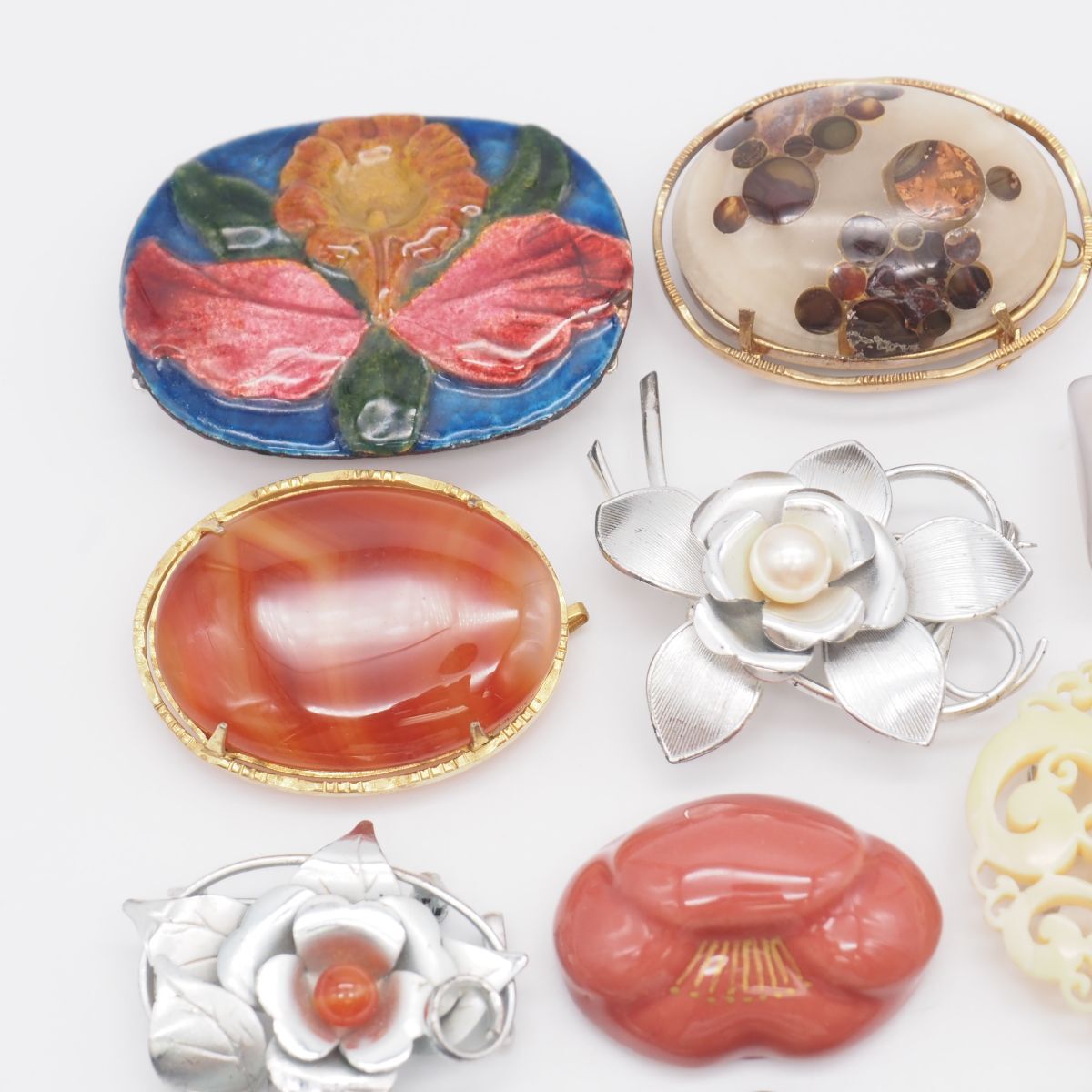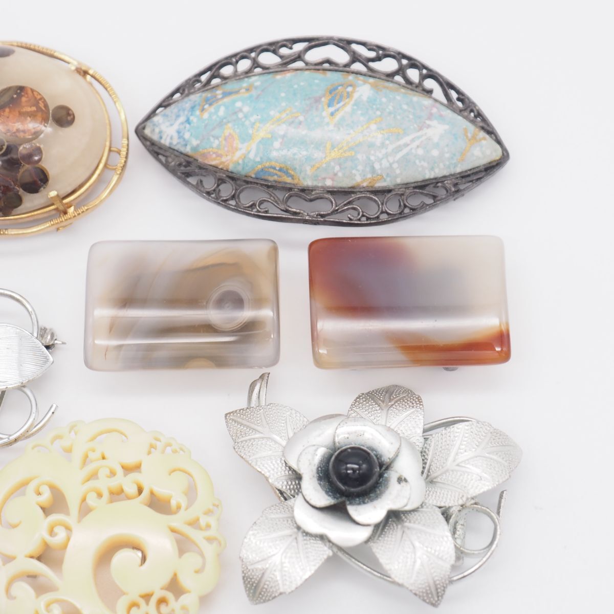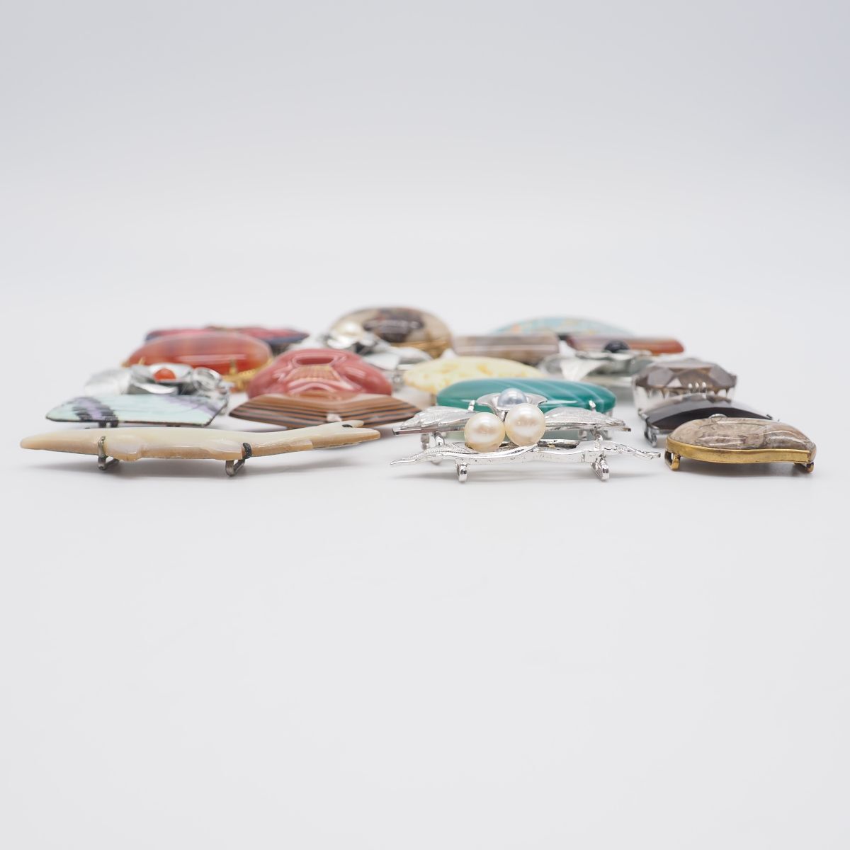 (WOB0912) 1円 帯留め 20個 大量セット 七宝 陶器 瑪瑙 メノウ 天然石 シルバー アンティーク 等 まとめて